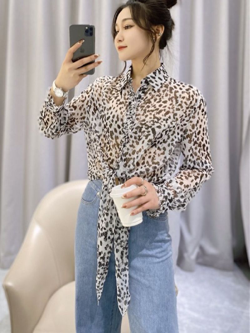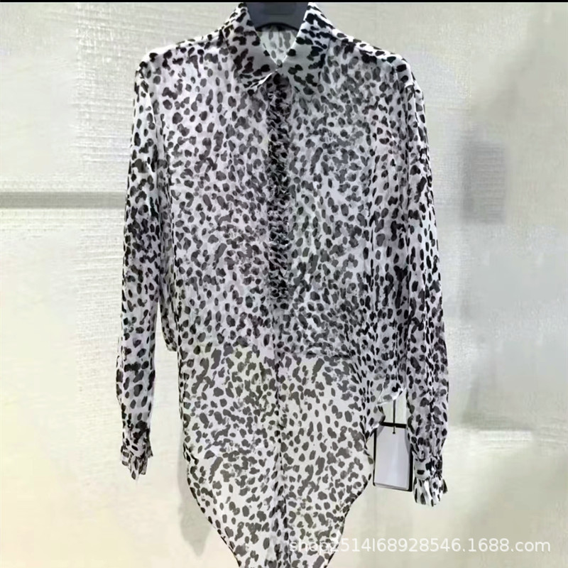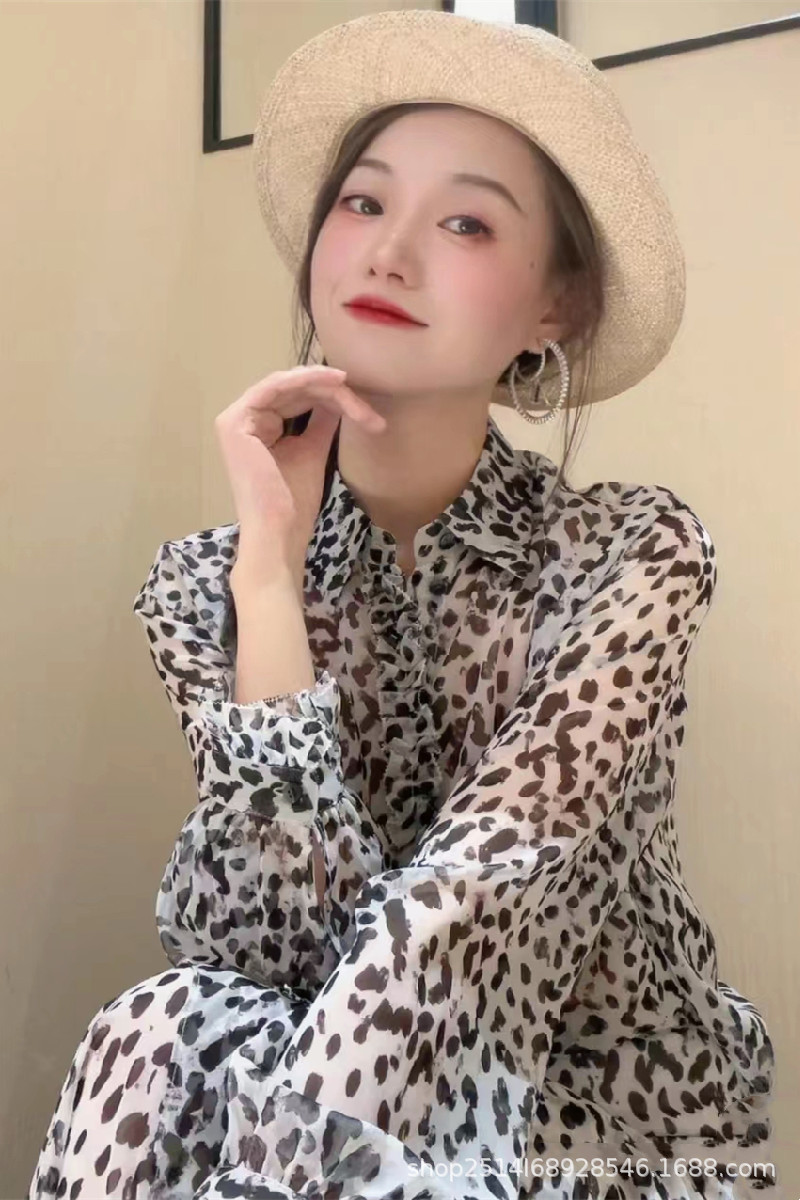 제가 운영하는 쇼핑몰의 2024년 여름 신상품, 세련되고 패셔너블한 빈티지 레오파드 프린트 스타일의 긴팔 셔츠 탑