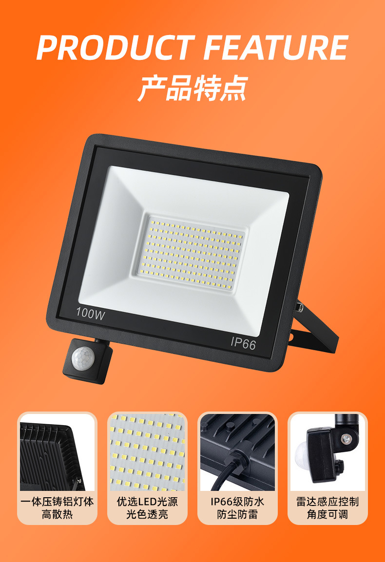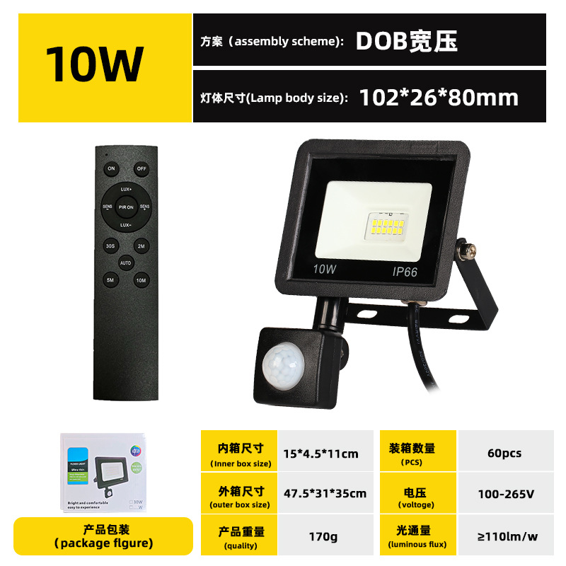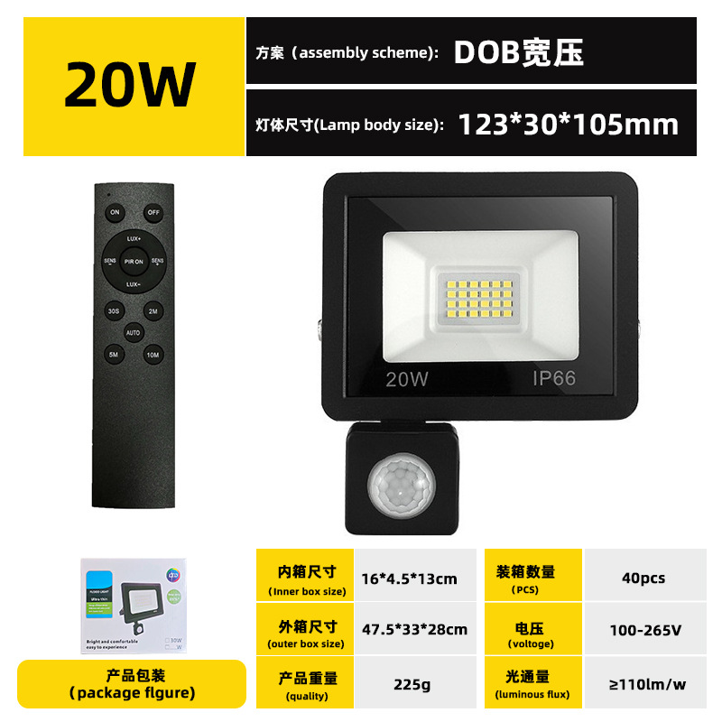 국경을 넘는 LED 투광 조명, 소형 사과 인체 센서 적외선 센서 투광 조명, 원격 제어 조명 제어 초박형 투광 조명스토어 가기