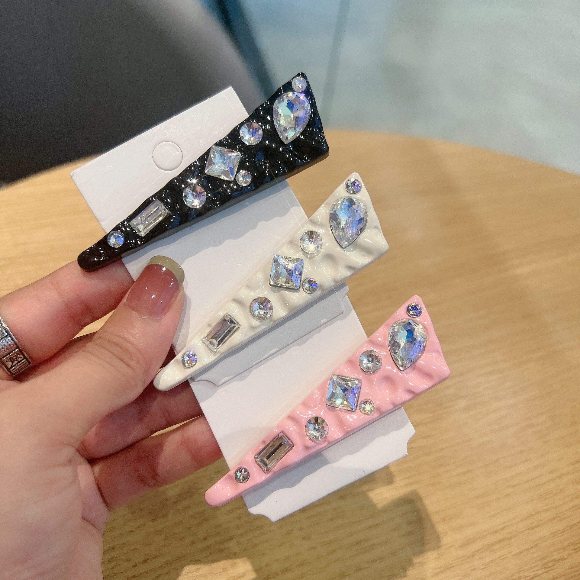새로운 슈퍼 플래시 기하학적 라인 석 헤어 클립 sweet in duck 빌 클립 기질 귀여운 사이드 클립 헤어 액세서리스토어 가기
