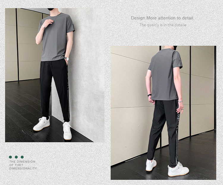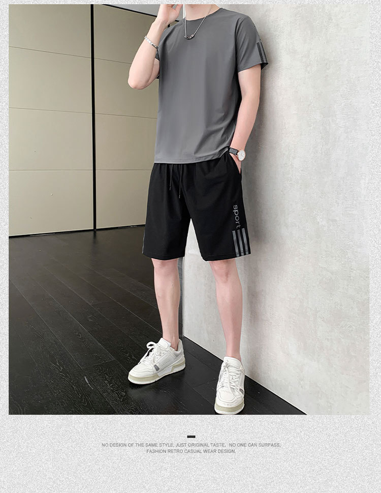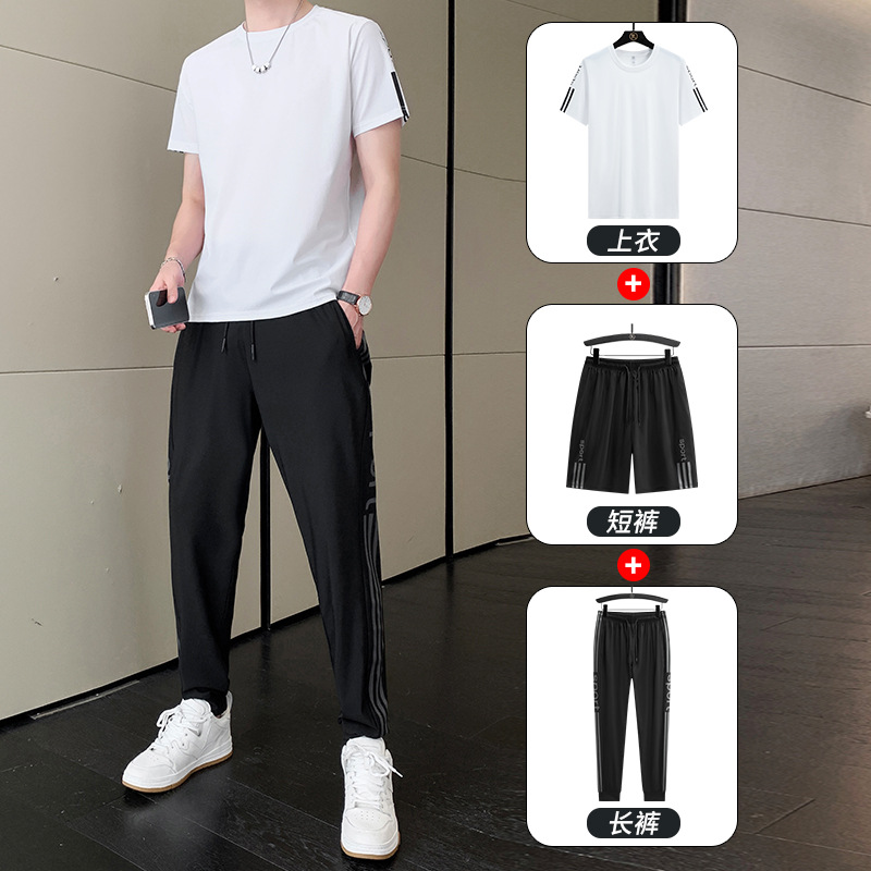 스포츠 세트 남성용 반팔 티셔츠 여름 아이스 실크 얇은 속건 반바지 느슨한 쓰리피스 바지 플러스 사이즈 실행스토어 가기