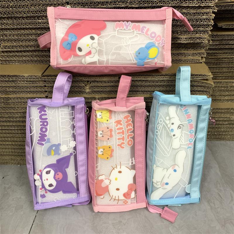 휴대용 큰 귀 개 투명 문구 가방 멜로디 kt 화장품 가방 배치와 산리오 Kulomi 대용량 필통