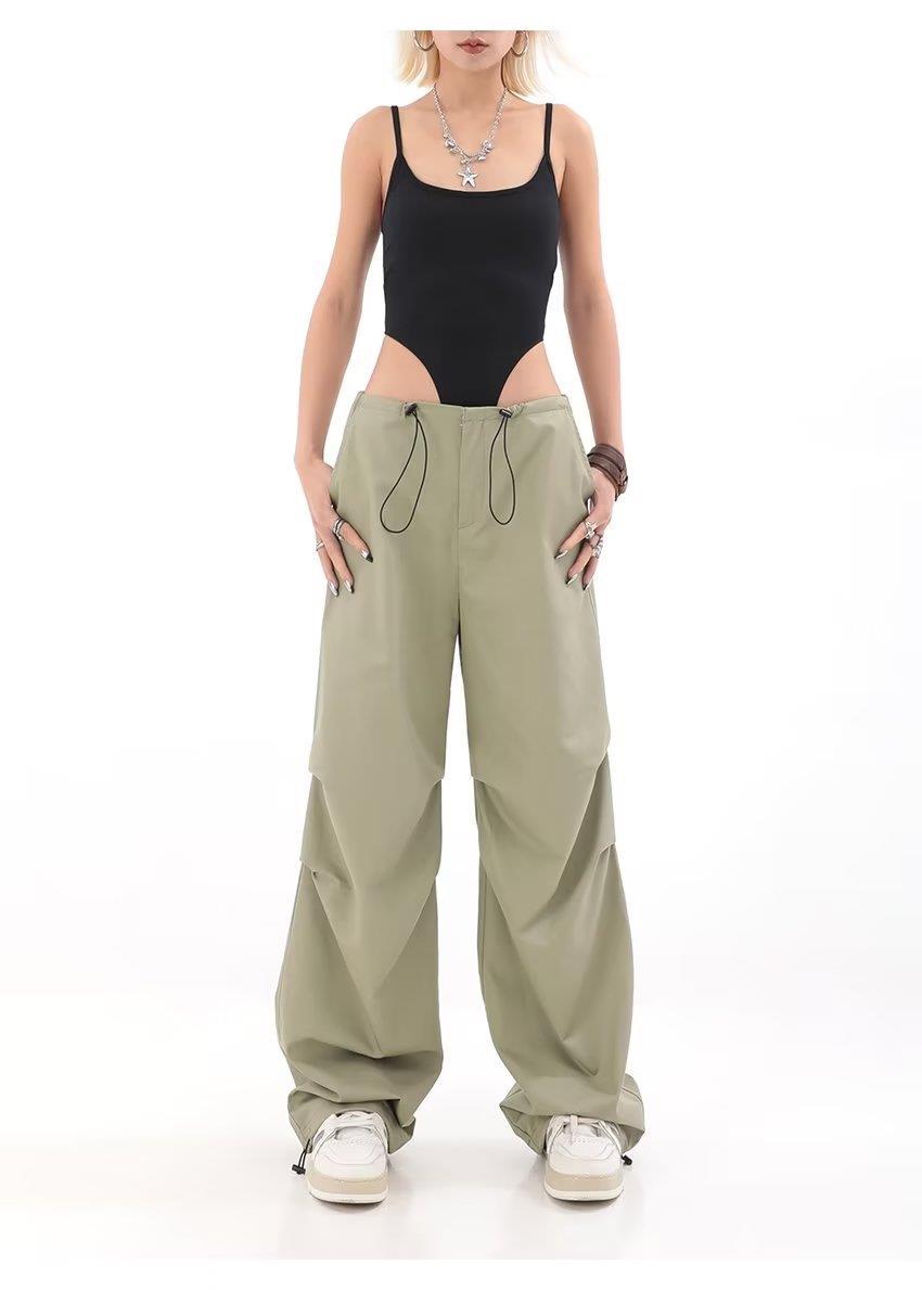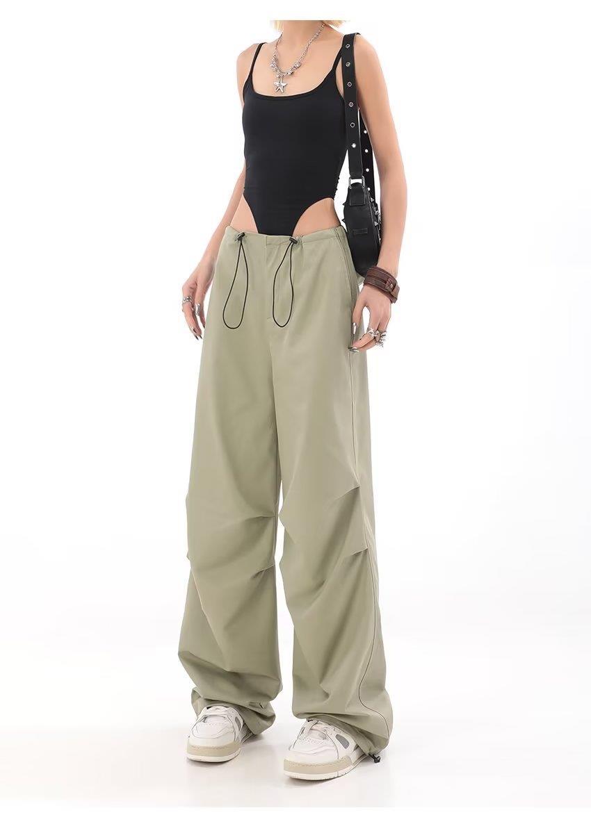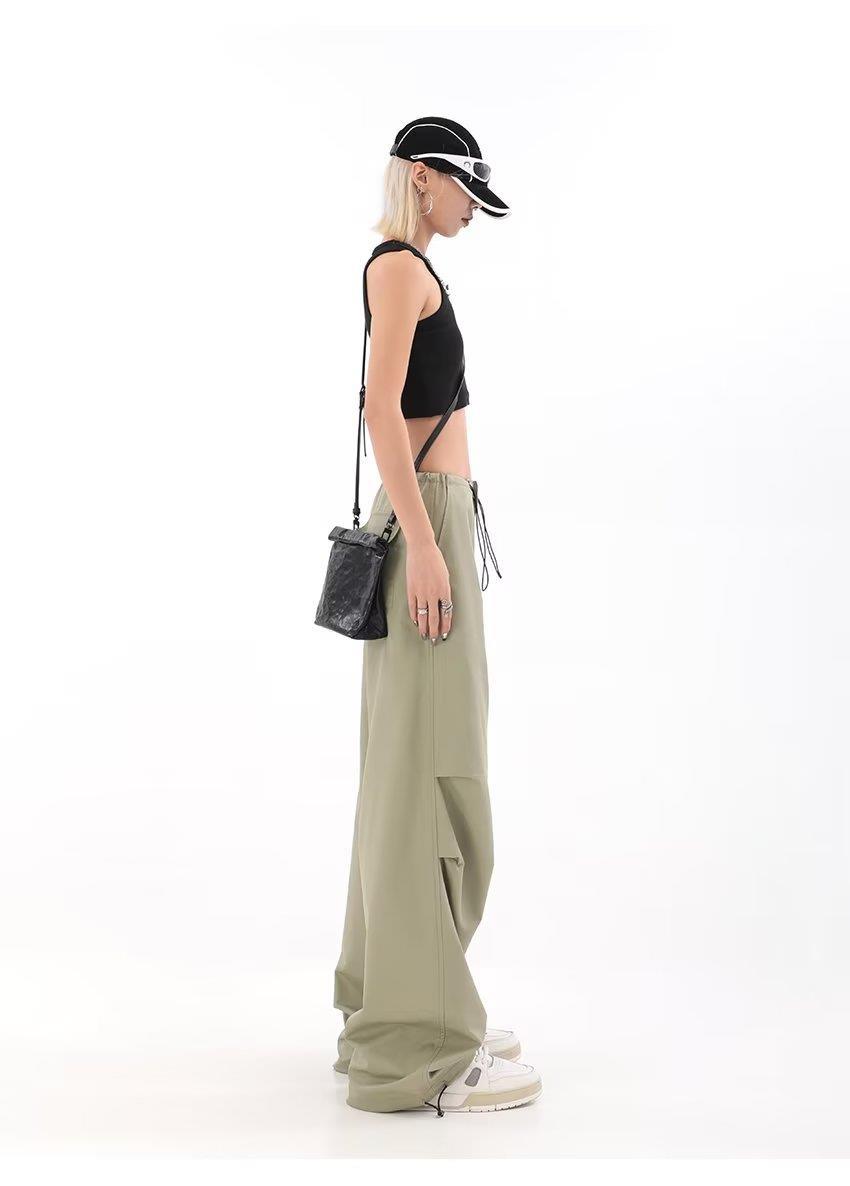 아메리칸 스타일 와이드 레그 낙하산 크레인 바지 여성용 느슨한 빈티지 캐주얼 충전 종이 가방 바지 여름 얇은 키 빠른 건조 바지스토어 가기