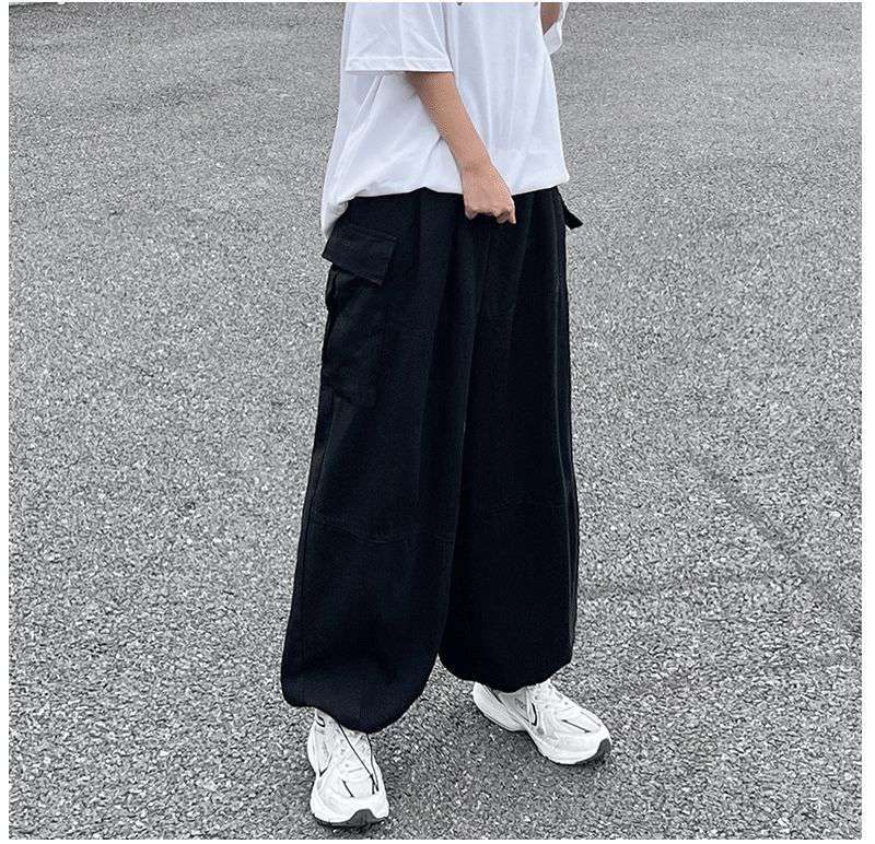 스트리트 작업 바지 남성용 일본 하이 스트리트 하라주쿠 스트레이트 튜브 느슨한 트렌드 홍콩 스타일 레트로 와이드 레그 팬츠 헤어 세대