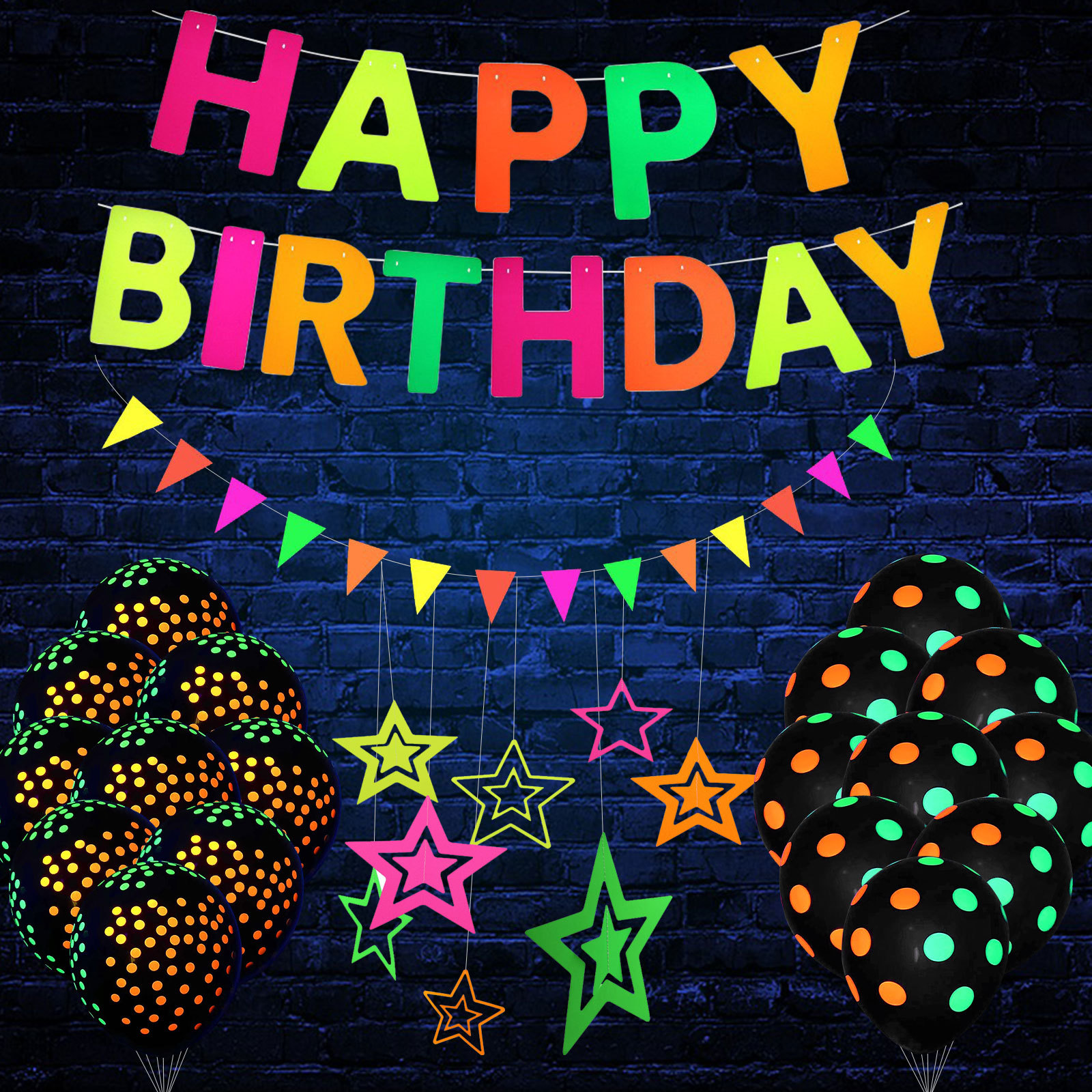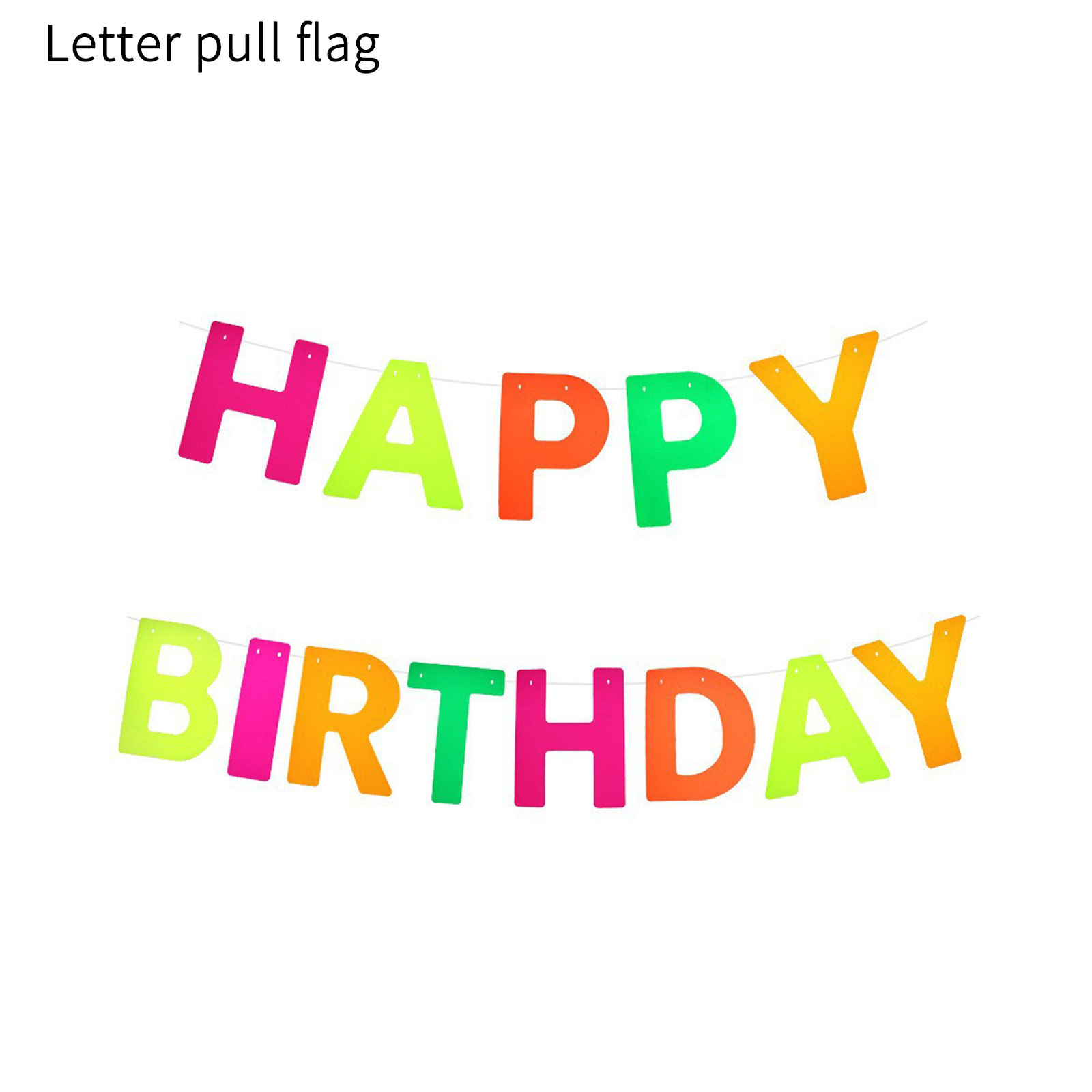 새로운 형광 테마 파티 세트 해피 생일 다채로운 깃발 어린이 생일 배너 장식