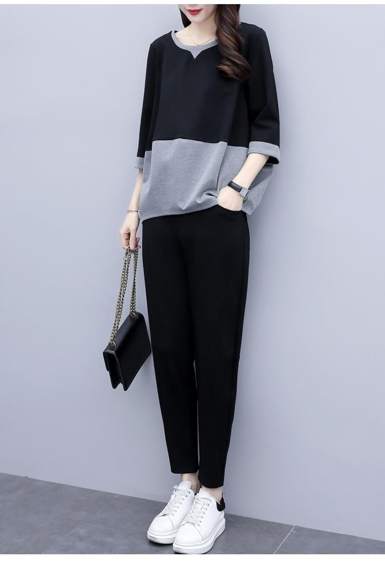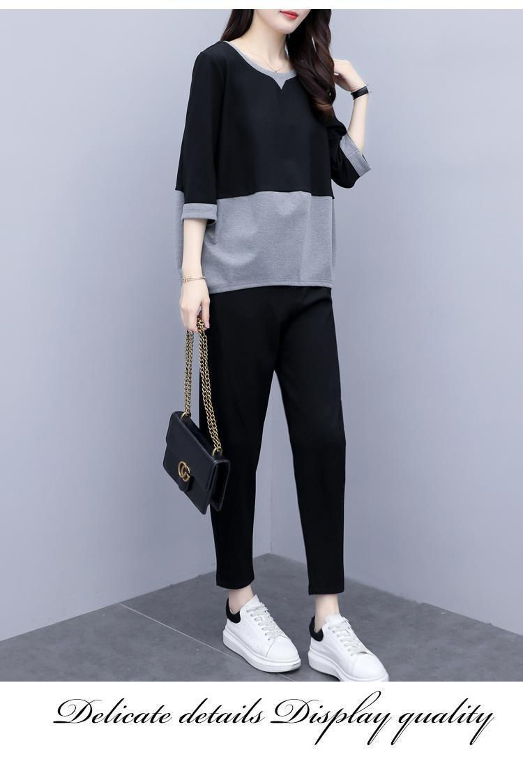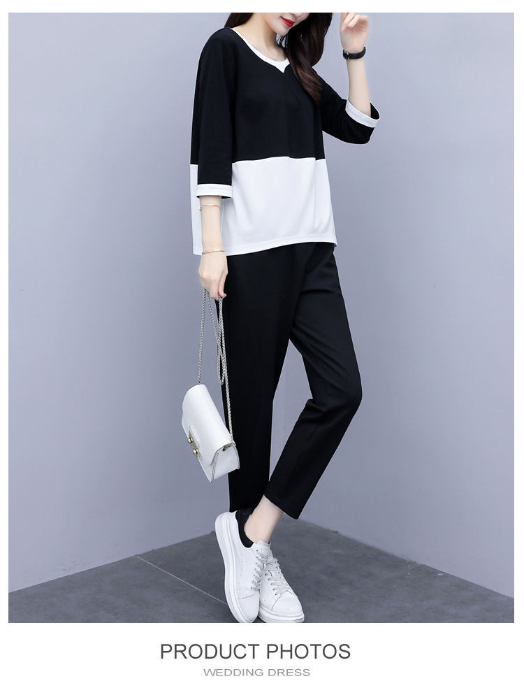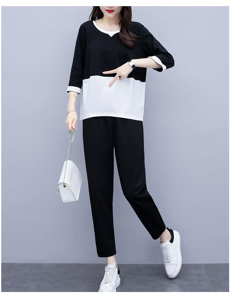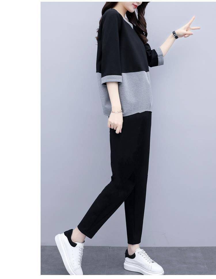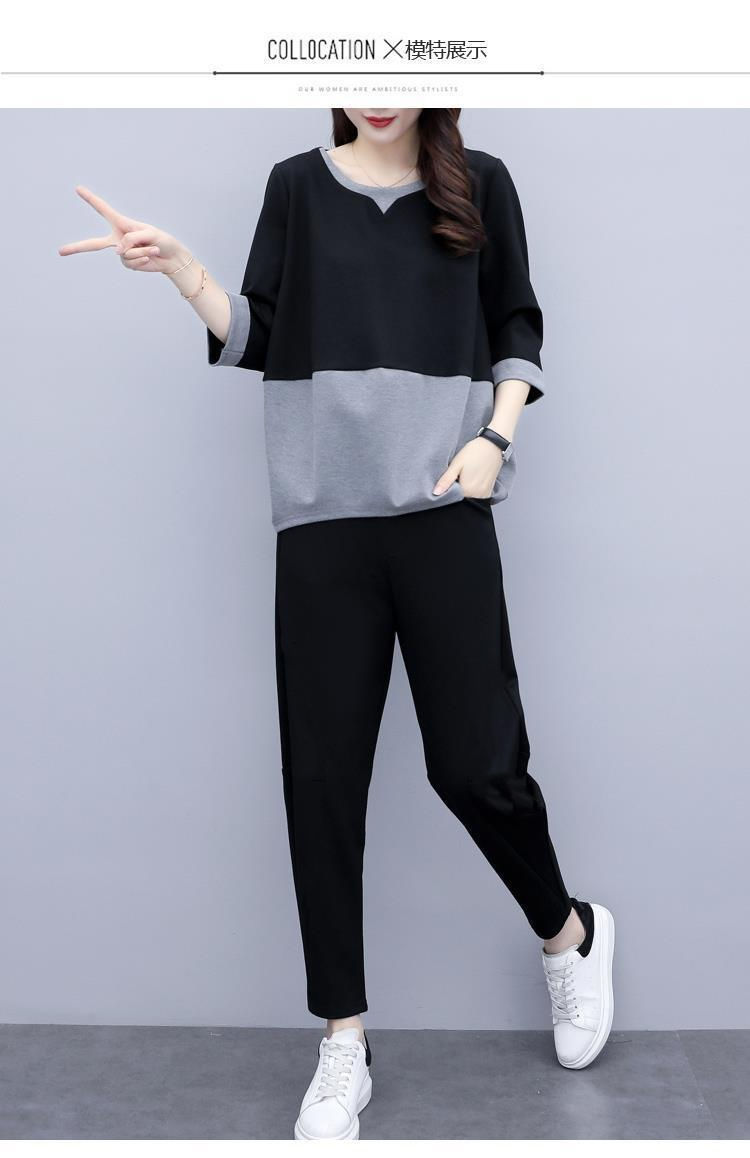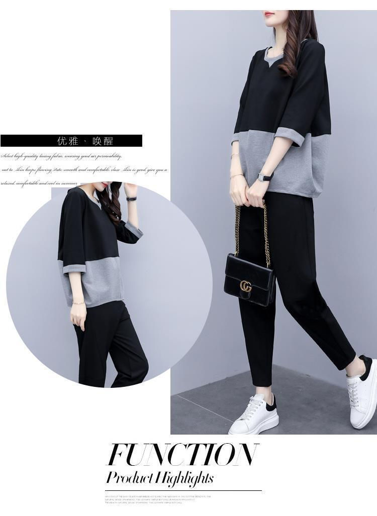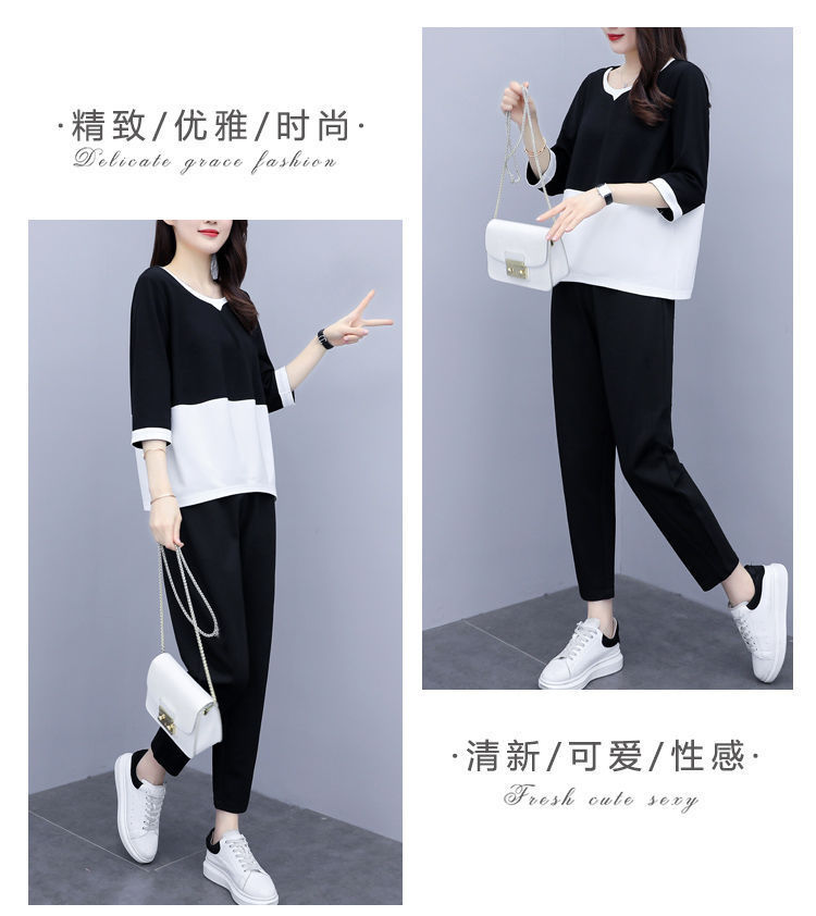 2022春夏装新款韩版时尚宽松大码两件套休闲小脚裤气质显瘦套装女