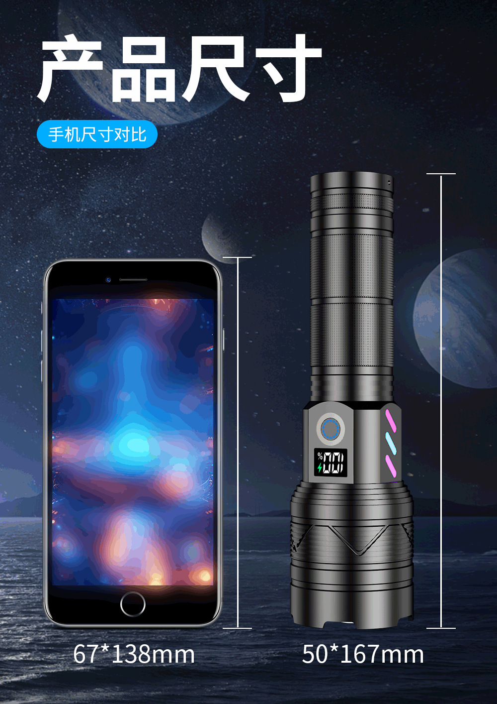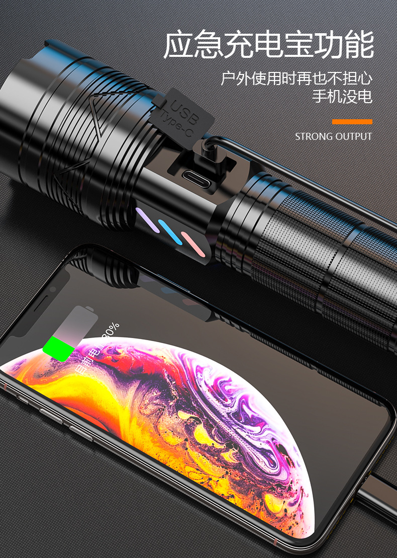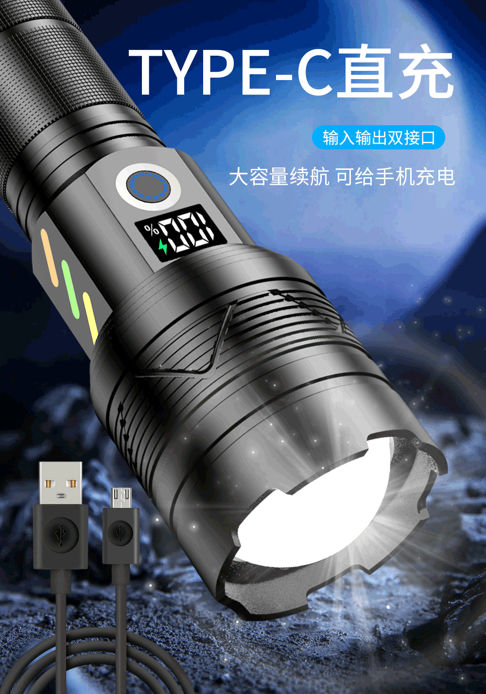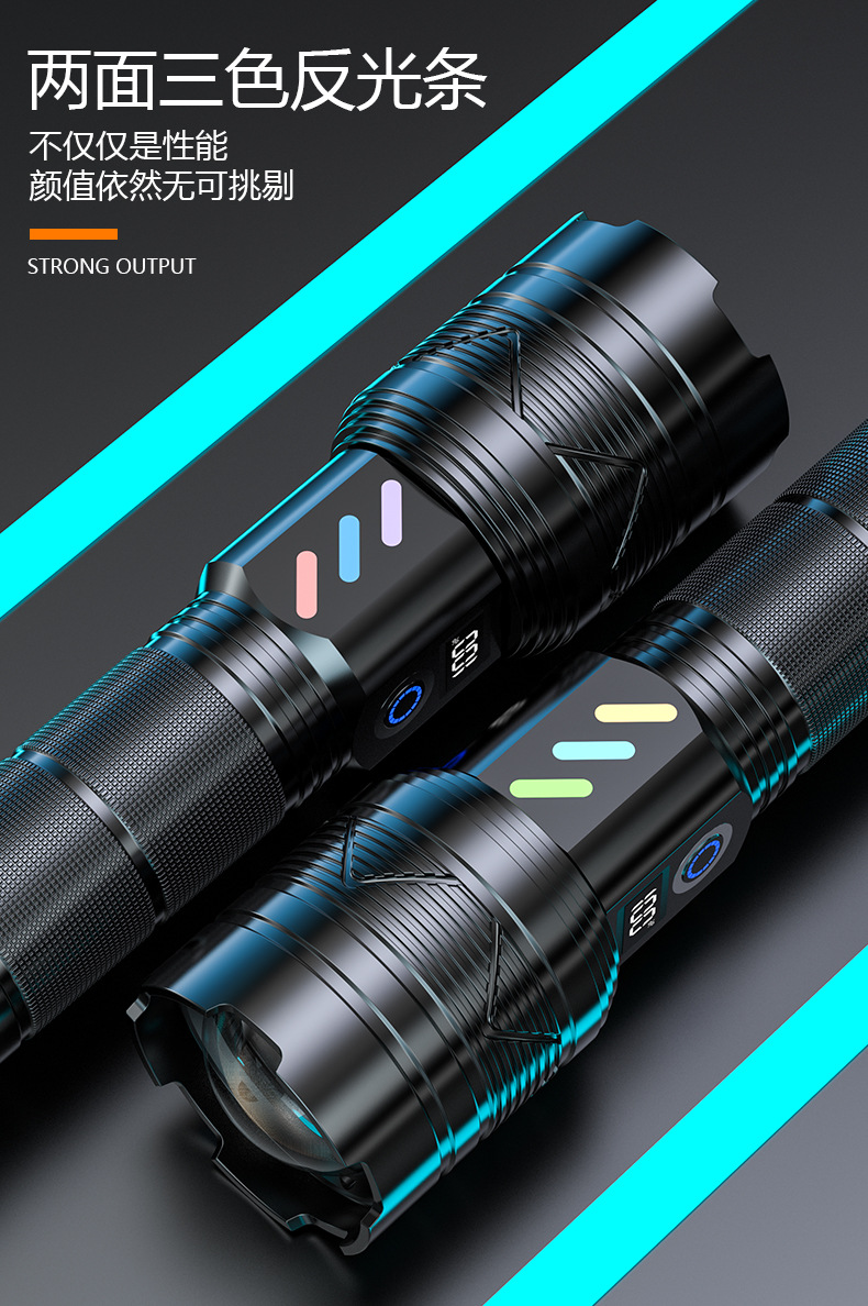 국경 다기능 전술 손전등 강한 빛 레이저 총 야외 줌 디지털 디스플레이 충전 20W 백색 레이저 손전등