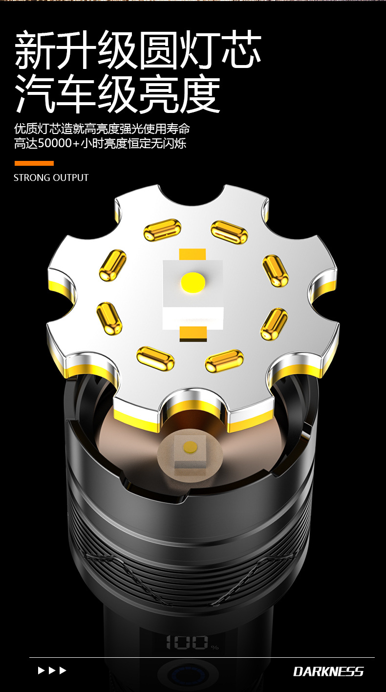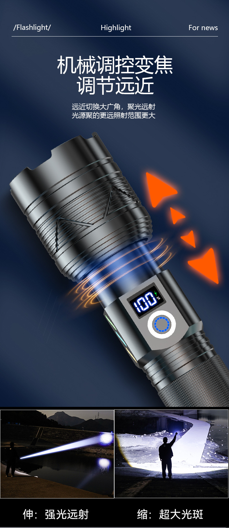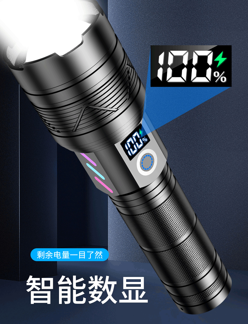 국경 다기능 전술 손전등 강한 빛 레이저 총 야외 줌 디지털 디스플레이 충전 20W 백색 레이저 손전등스토어 가기