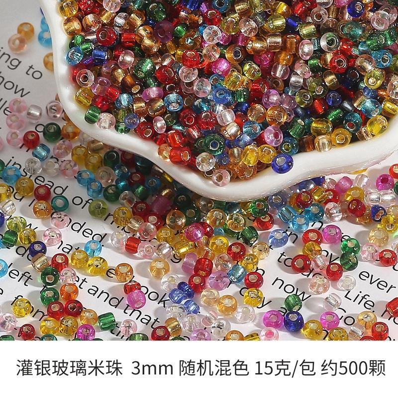 • 투명 유리 구슬 3mm 무작위 색상 혼합 15g/팩 약 500