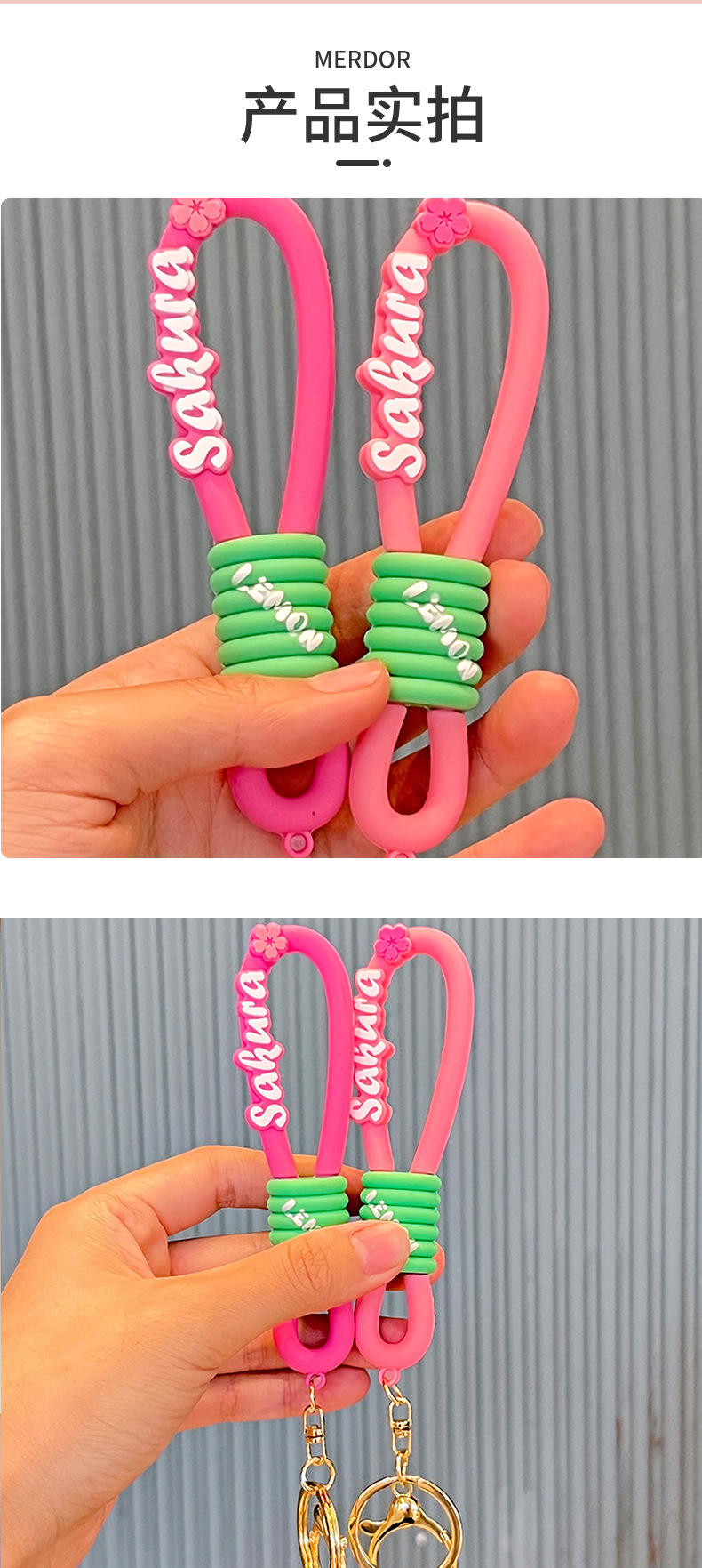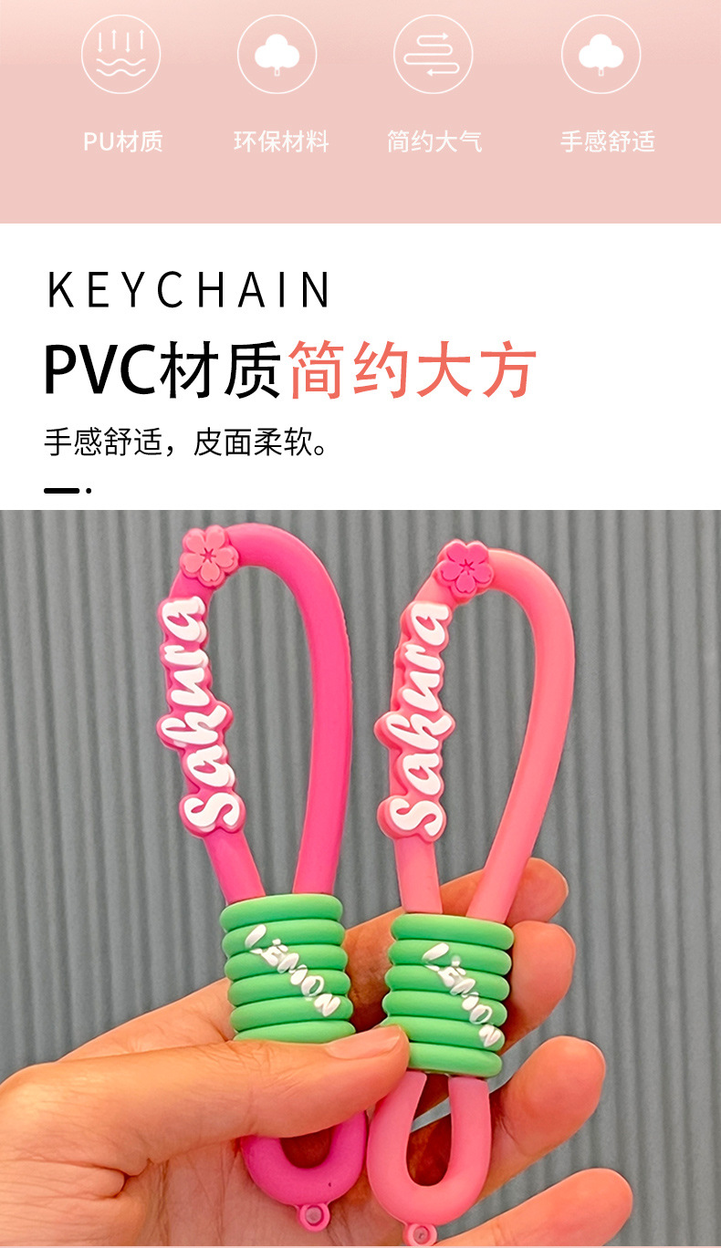 핑크 벚꽃 손 밧줄 버클 실리콘 열쇠 고리 액세서리 PVC 떨어지는 부드러운 고무 배낭 버클 책가방 펜던트 열쇠 고리
