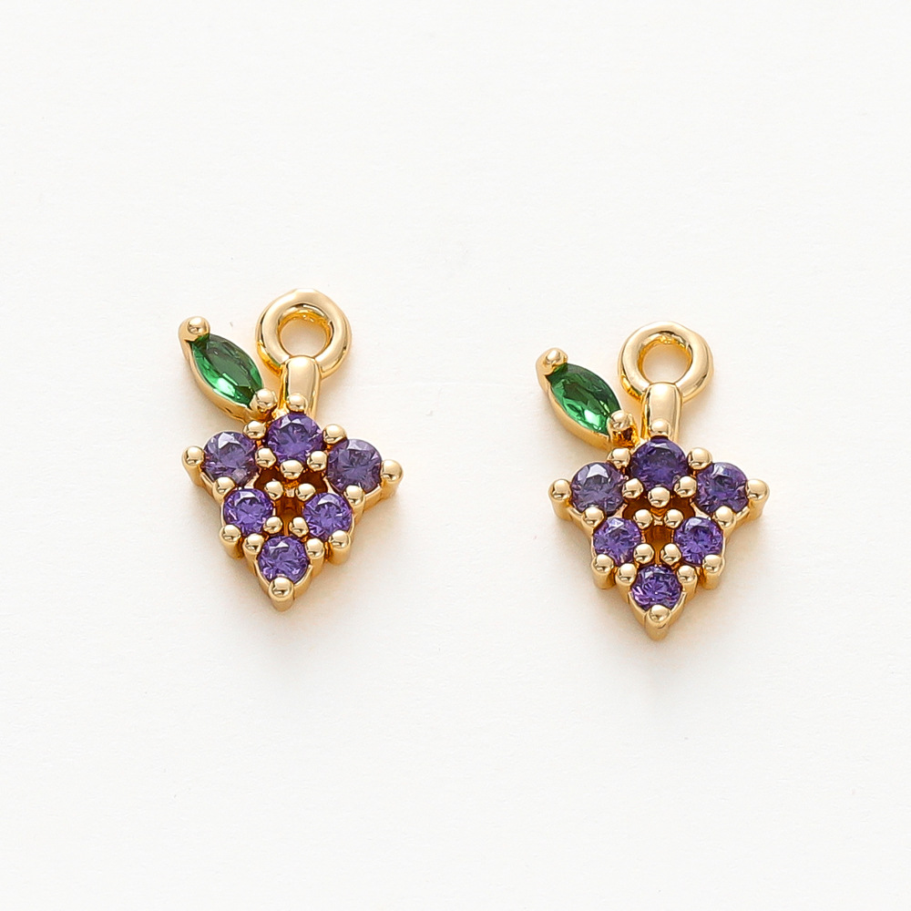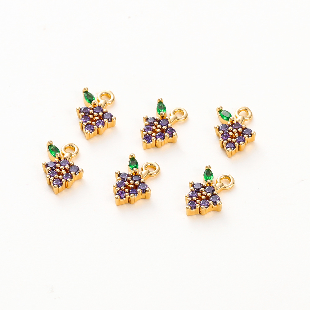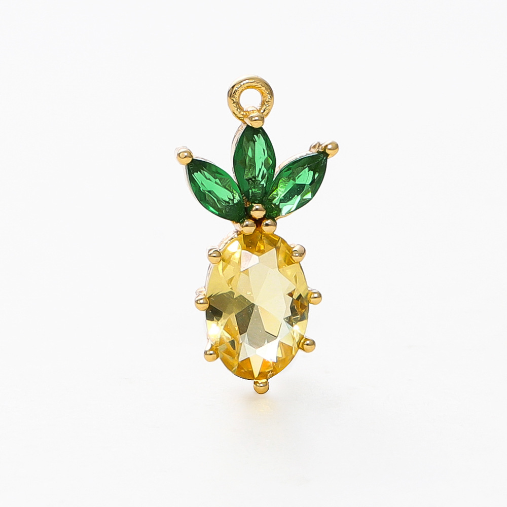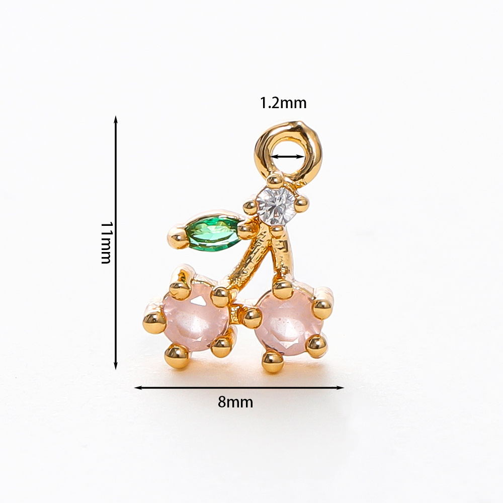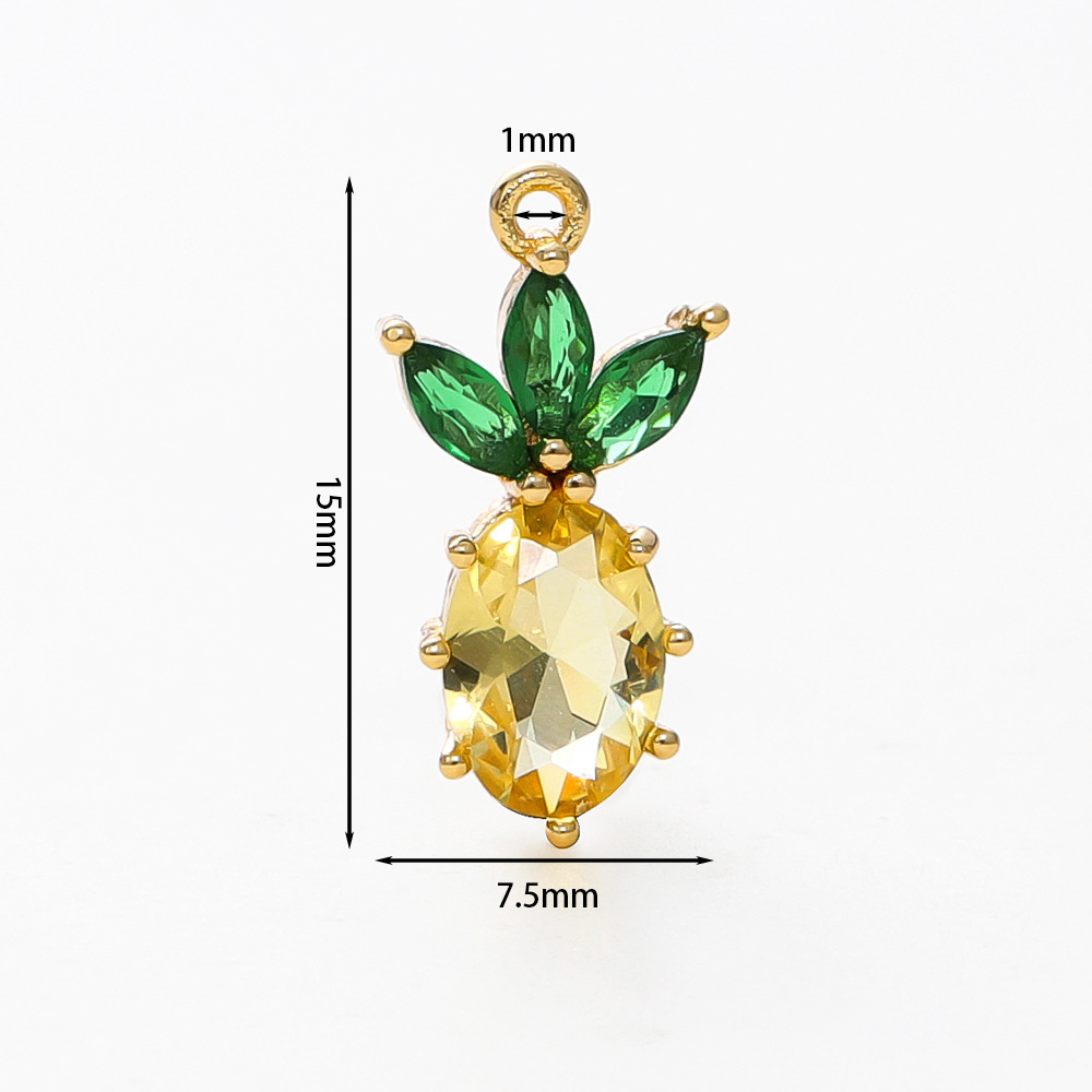 18K 골드 과일 시리즈 액세서리 상감 지르콘 체리 파인애플 펜던트 DIY 귀걸이 팔찌 펜던트 색상 유지 액세서리스토어 가기