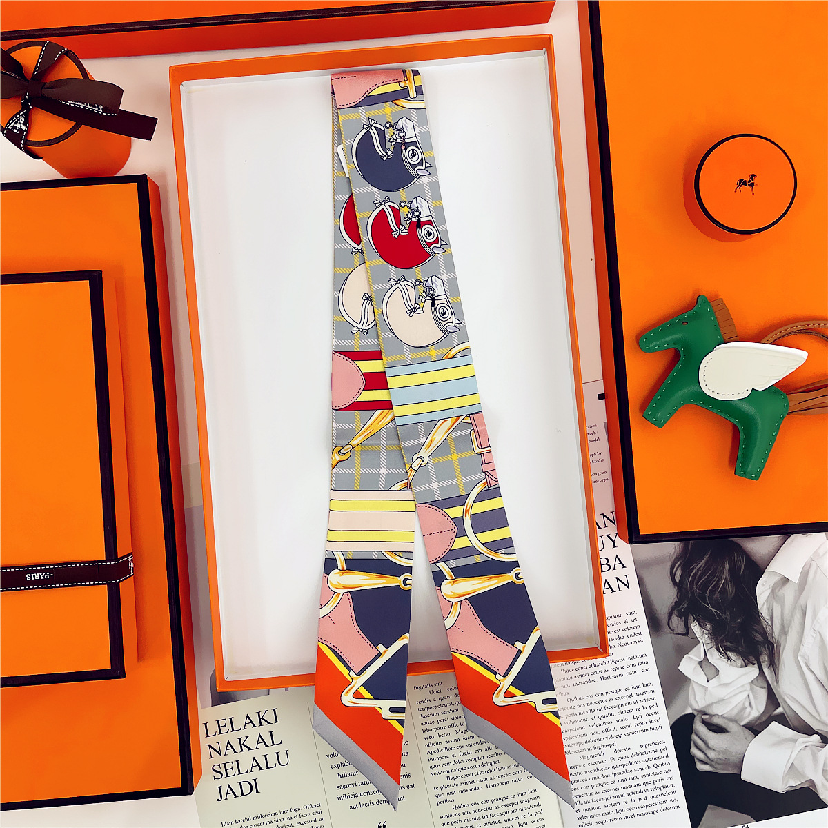 고급 쑤저우-항저우 실크 능직 실크 뽕나무 실크 스카프 더블 레이어 양면 실크 스카프 작은 긴 스카프 리본