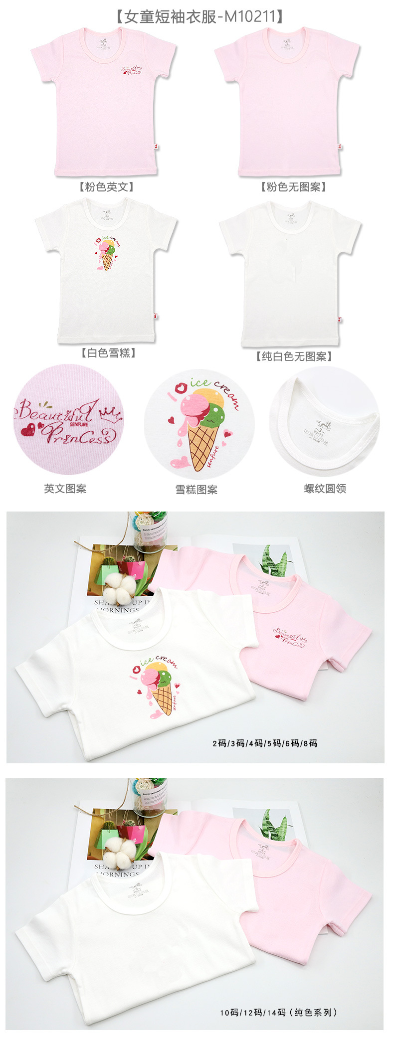• M10211 반팔 투피스 핑크 영어 + 화이트 아이스크림