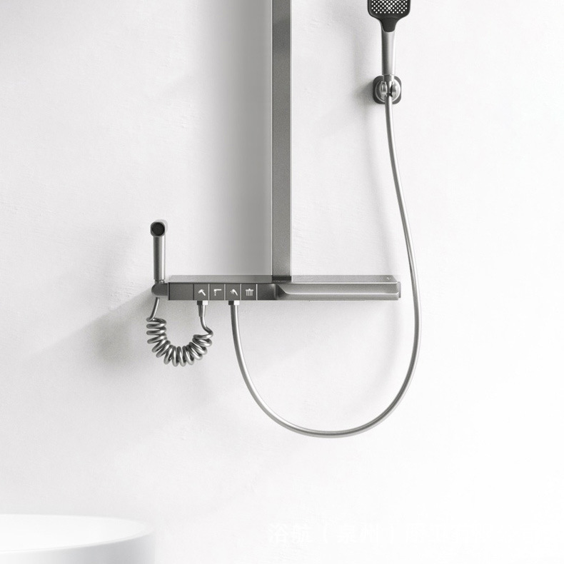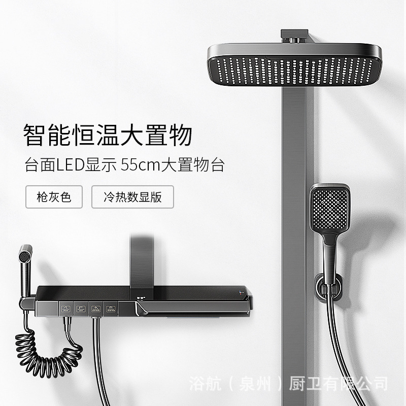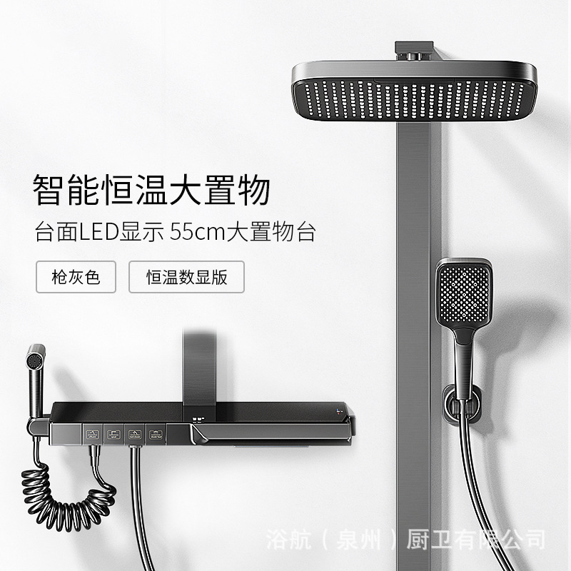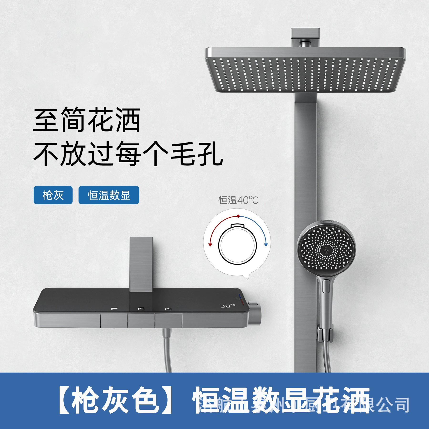 인터넷 연예인 가정용 총 회색 디지털 디스플레이 대형 저장 패널 욕실 모든 구리 샤워 온도 조절 샤워 세트 샤워 헤드스토어 가기