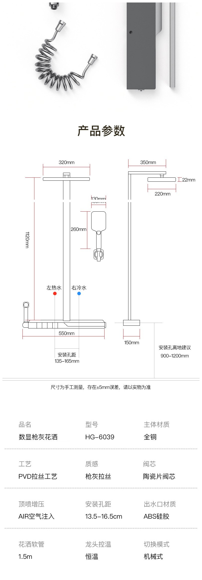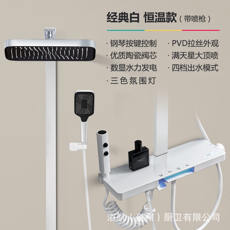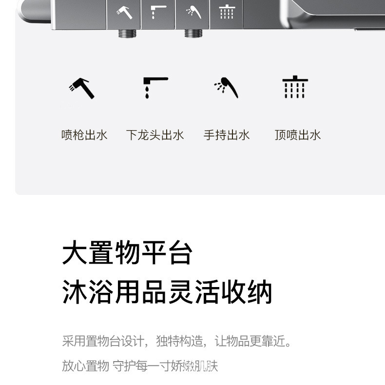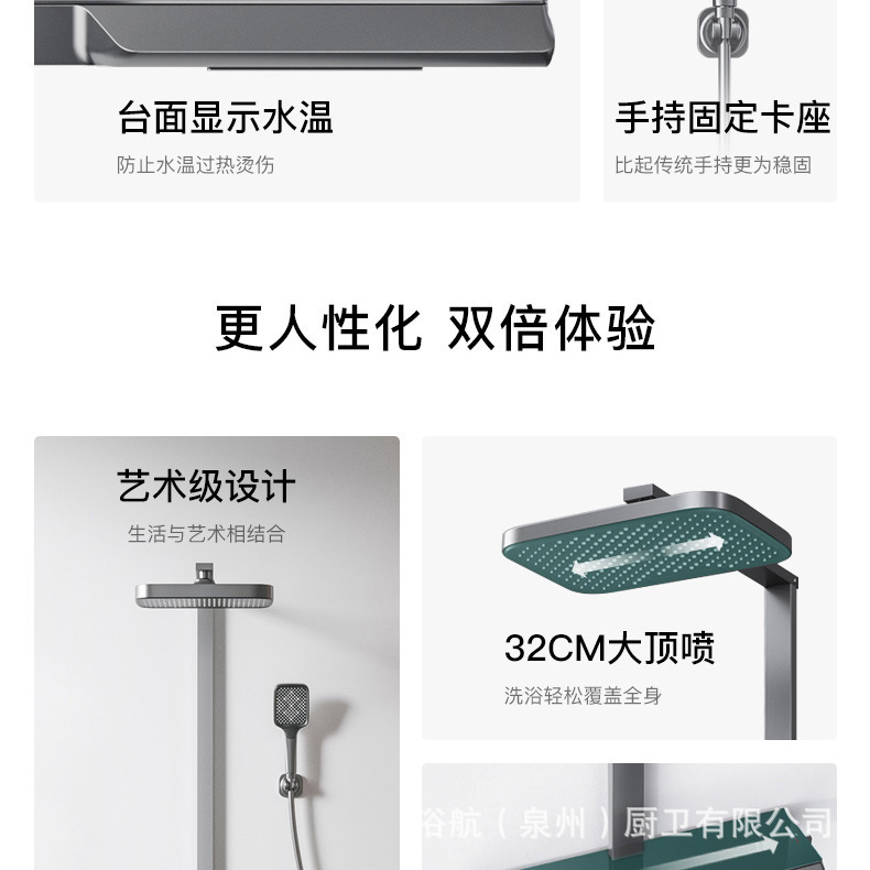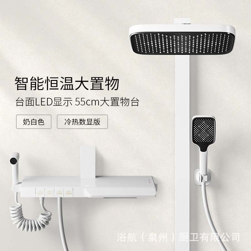 인터넷 연예인 가정용 총 회색 디지털 디스플레이 대형 저장 패널 욕실 모든 구리 샤워 온도 조절 샤워 세트 샤워 헤드스토어 가기