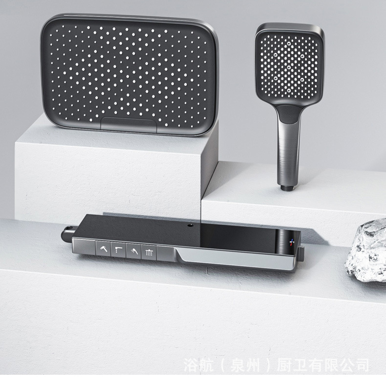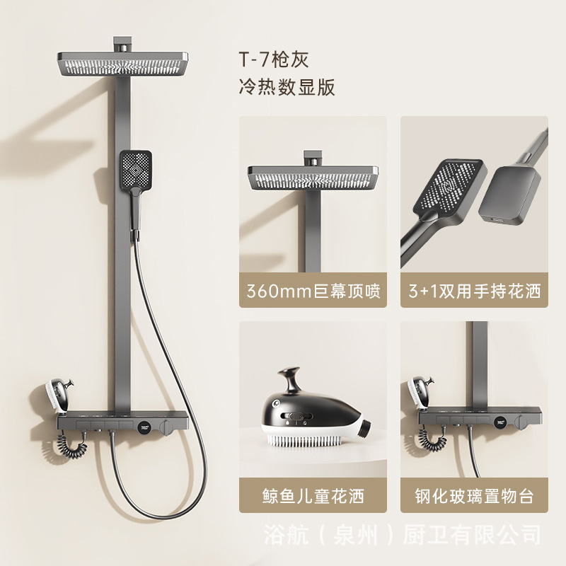 인터넷 연예인 가정용 총 회색 디지털 디스플레이 대형 저장 패널 욕실 모든 구리 샤워 온도 조절 샤워 세트 샤워 헤드