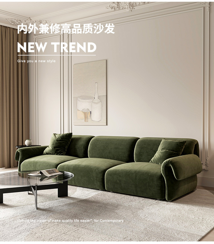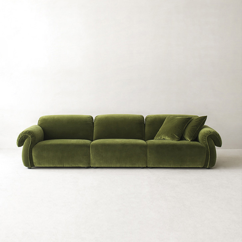프랑스 복고풍 짙은 녹색 소파 거실 작은 아파트 3인용 직선 벨벳 패브릭 문어 소파스토어 가기