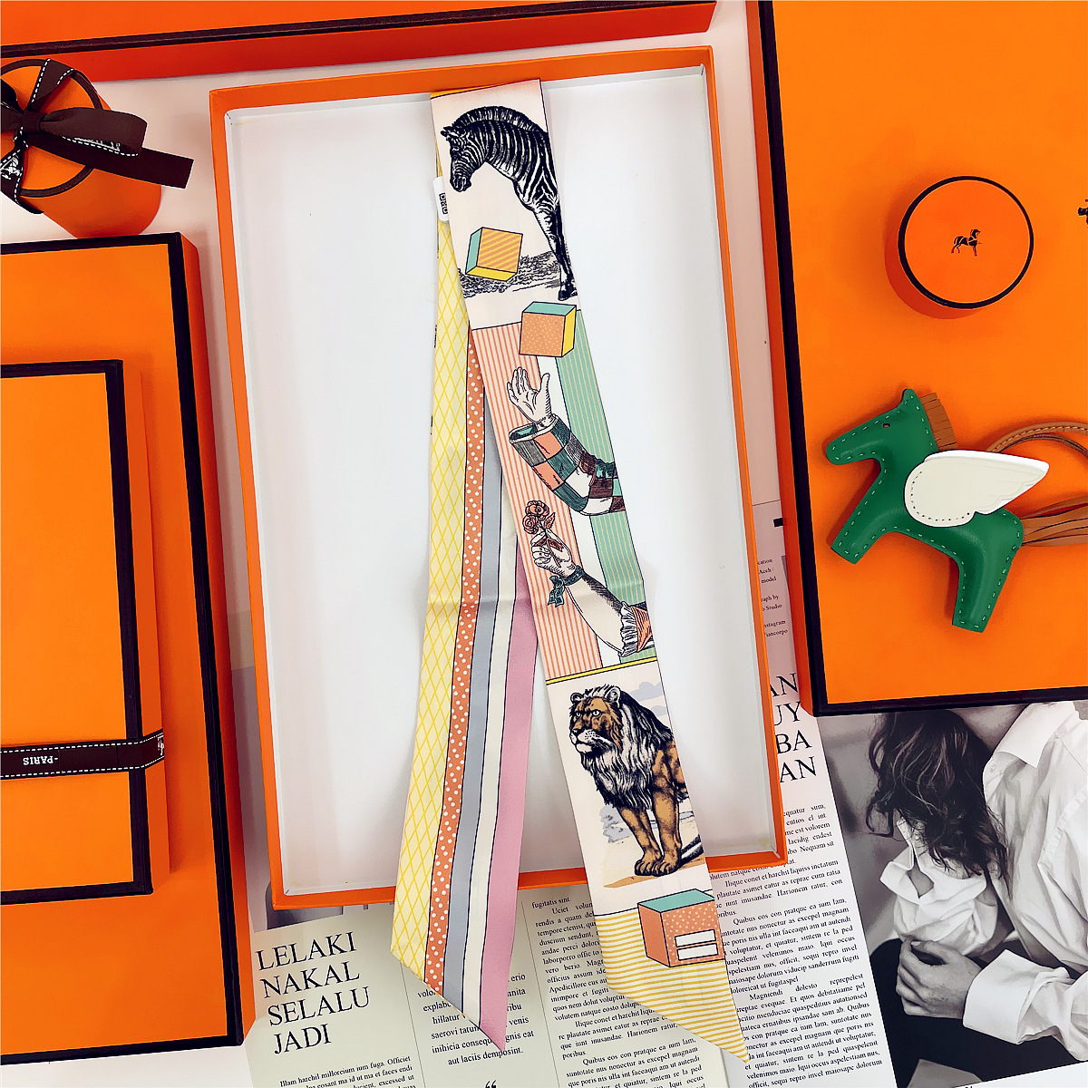 봄과 여름 새로운 실크 얇은 좁은 긴 실크 스카프 뽕나무 실크 작은 리본 리본 모든 일치 여성 스카프 넥타이 가방 핸들스토어 가기