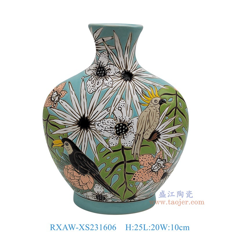产 品 名 称:蓝底花鸟花瓶罐子