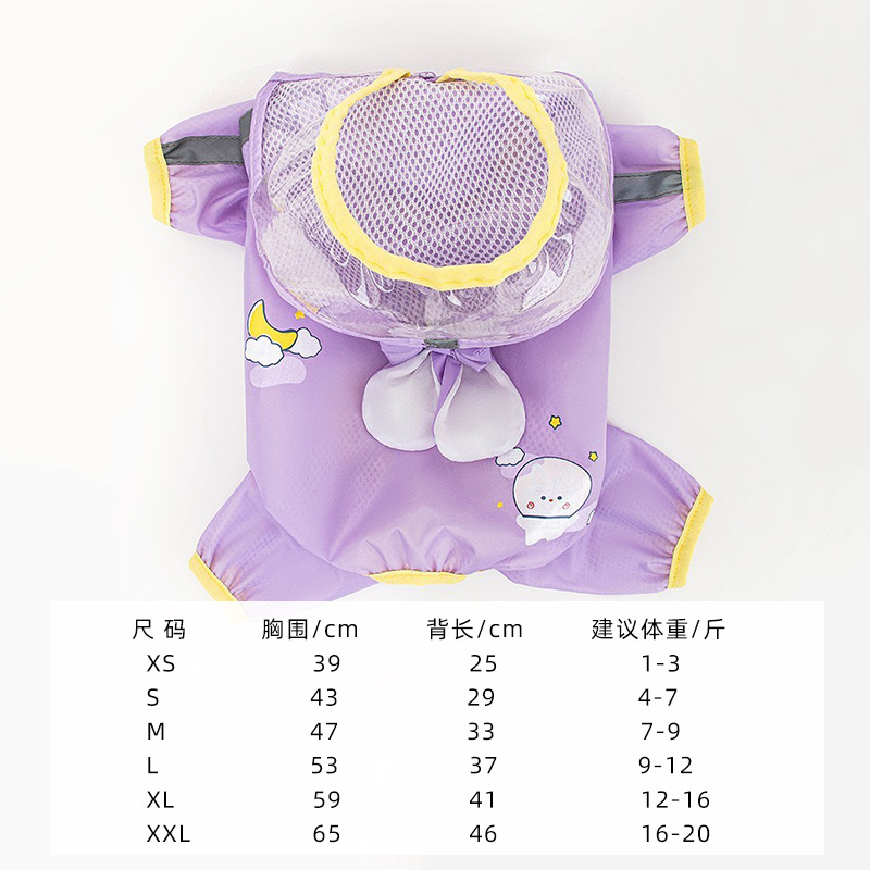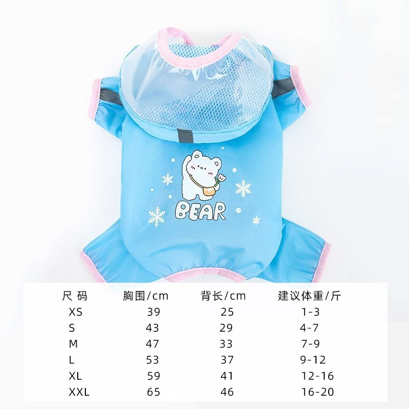 도매 공룡 강아지 비옷 4 족 방수 올인클루시브 소형견 중형 개 배 보호 판초 애완동물 의류