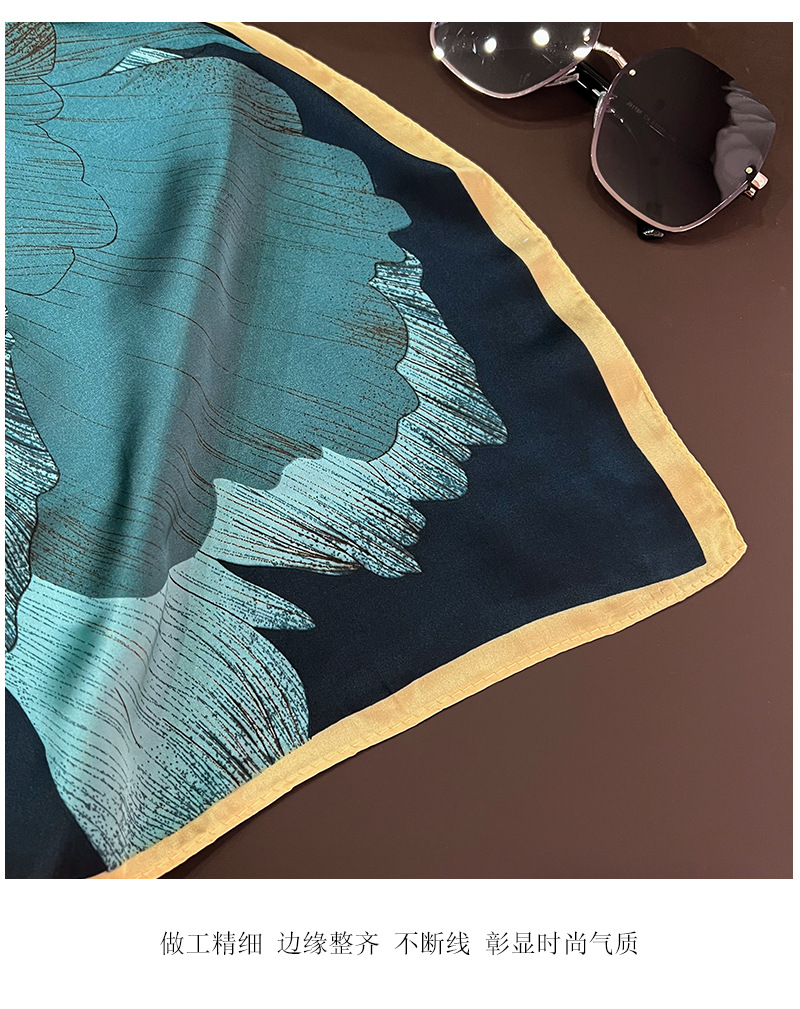 2023 새로운 아쿠아 블루 플라워 로즈 스카프 고급 자외선 차단제 길게 인쇄 실크 롱 스카프 여성용 외부 스카프