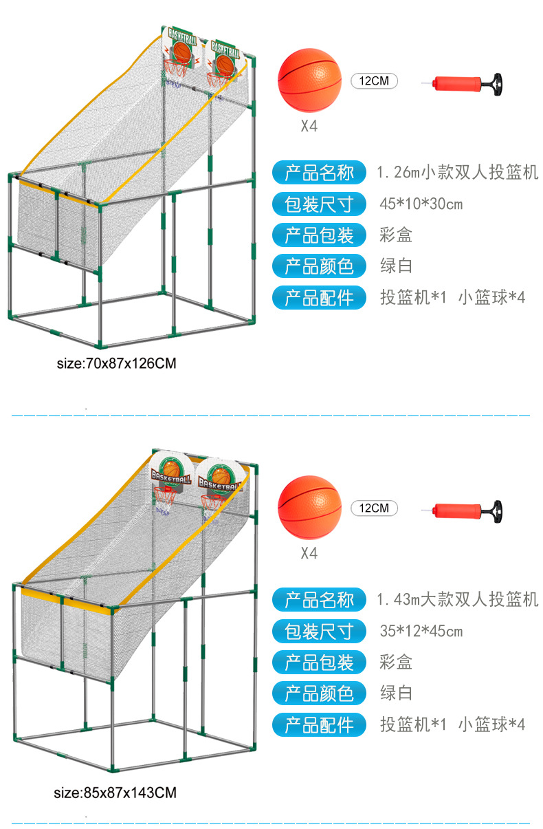 • 1.26m 소형 더블 농구 기계 + 4 공 (12cm)