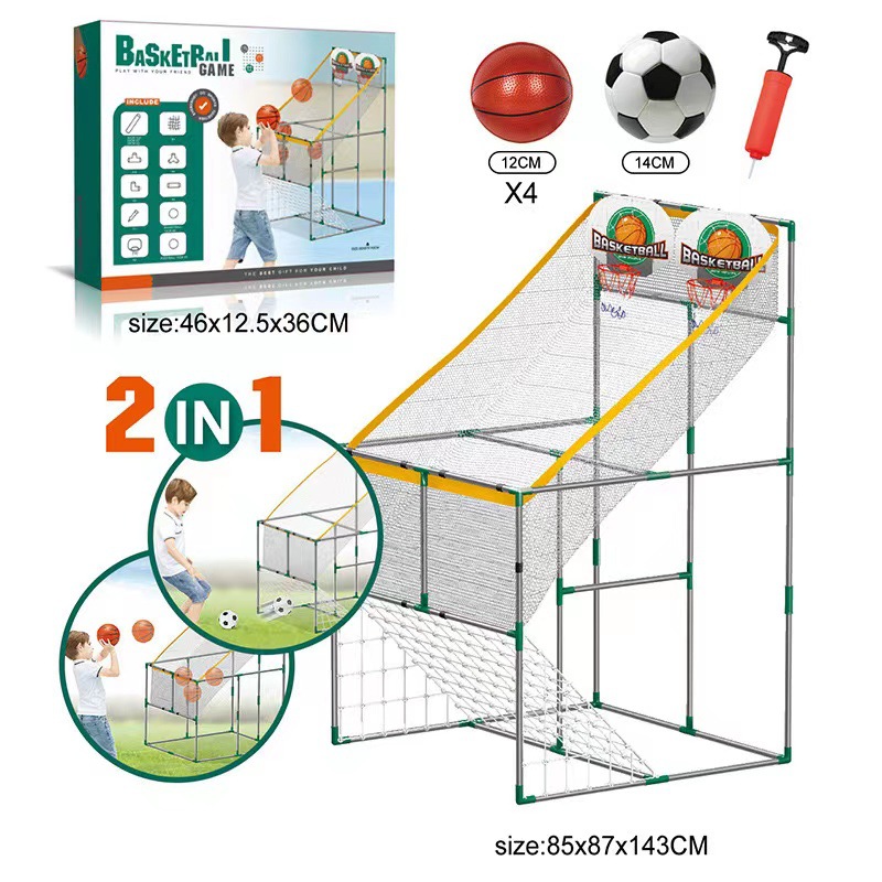 • 축구 게이트 + 공 2 개 (12cm) 가있는 1.43m 대형 더블 농구 기계