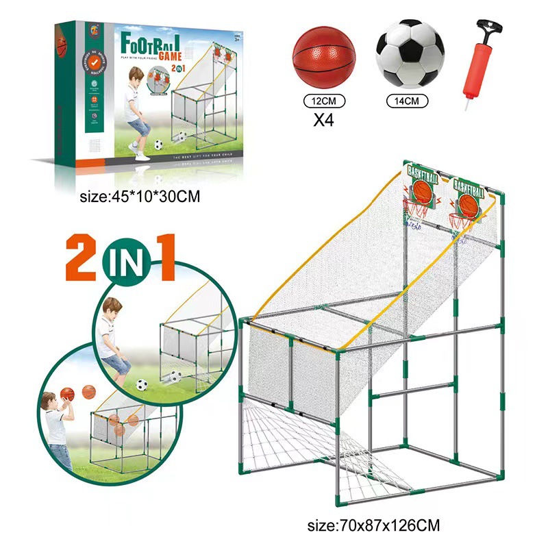 • 축구 게이트 + 공 4 개 (12cm) 가있는 1.26m 소형 더블 농구 기계