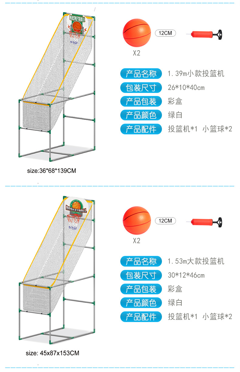 • 1.39m 소형 농구 기계 + 6 공 (12cm)