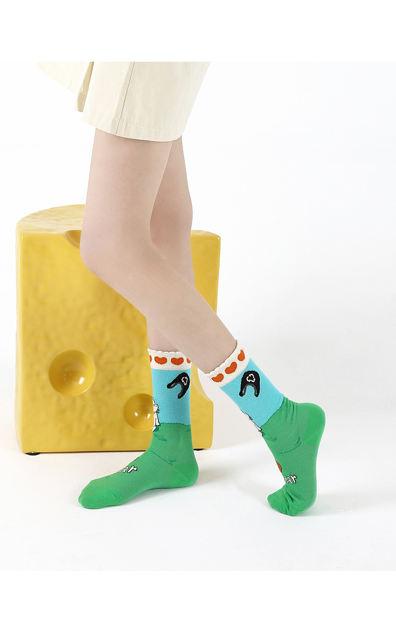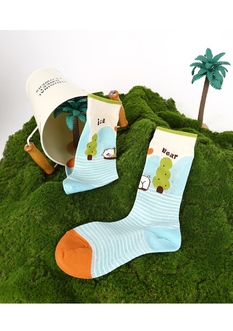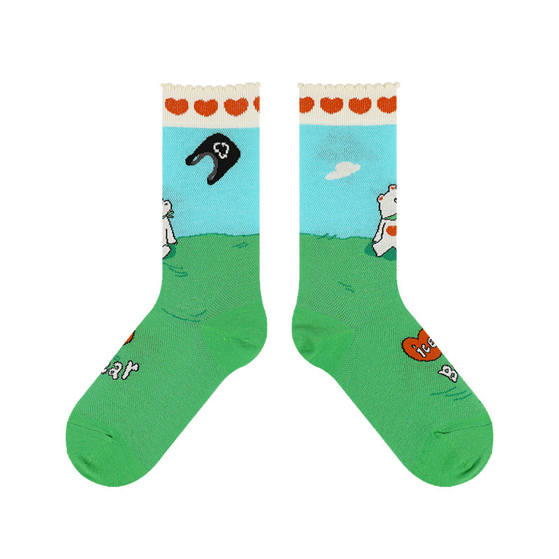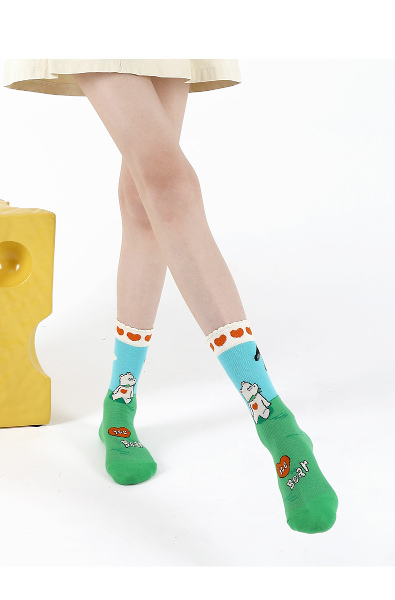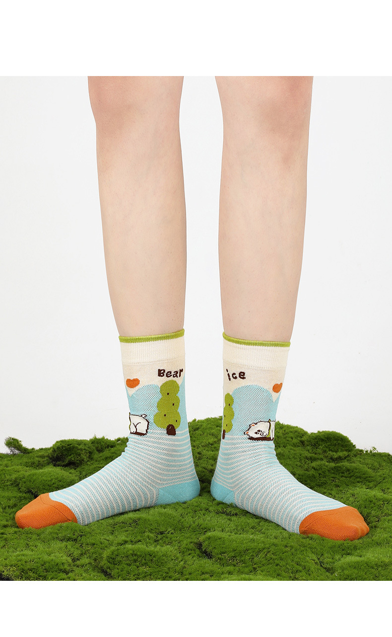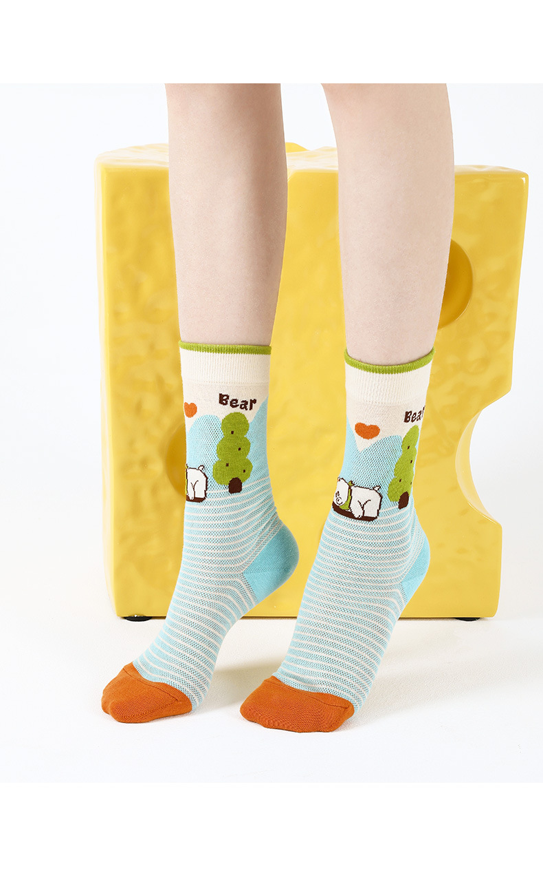 DAMAHOOV 양말 여성용 여름 초박형 크리스탈 양말 만화 곰 일러스트 튜브 양말 달콤한 버블 레이스 양말스토어 가기