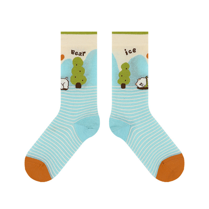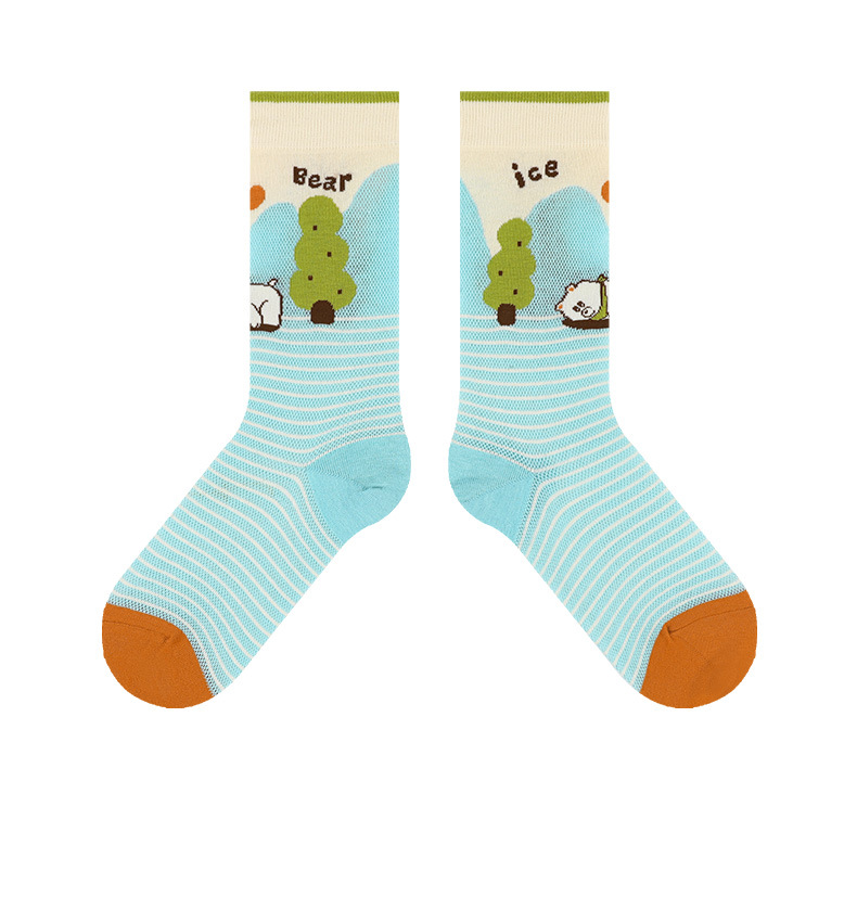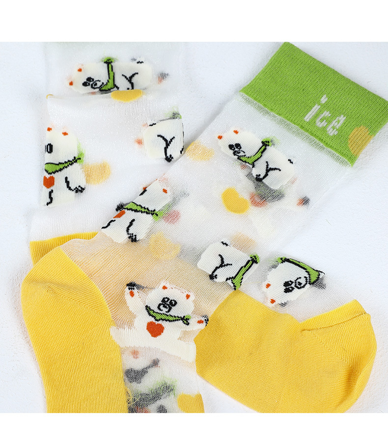 DAMAHOOV 양말 여성용 여름 초박형 크리스탈 양말 만화 곰 일러스트 튜브 양말 달콤한 버블 레이스 양말