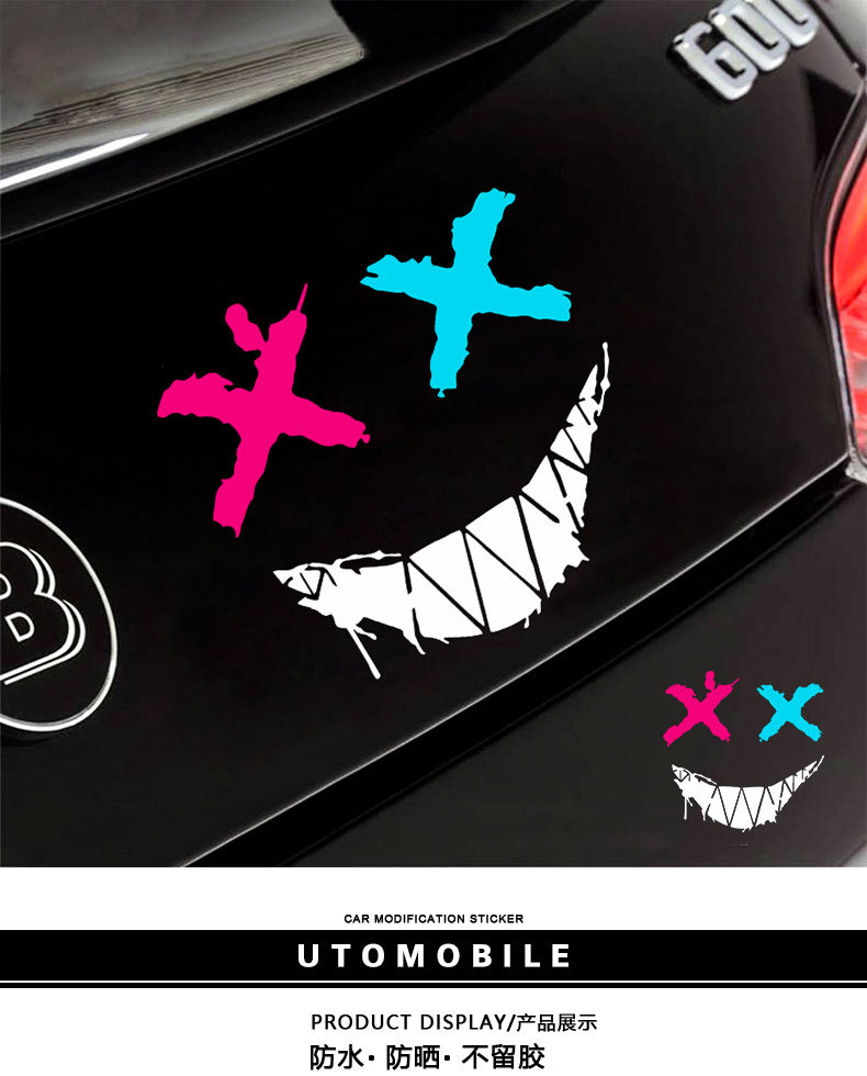 크로스 보더 눈 XX 악마 스마일 얼굴 하얀 이빨 자동차 스티커 전기 오토바이 헬멧 후면 창 성격 스티커스토어 가기