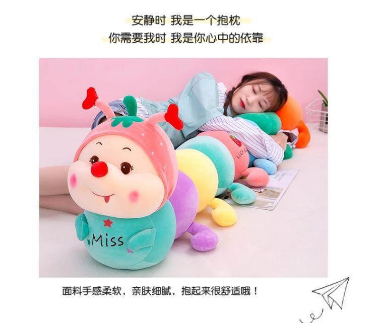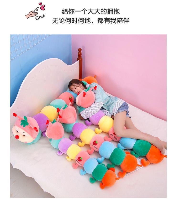 애벌레 봉제 인형 베개 인형 어린이 인형 긴 인형 소녀 침대 다리 사이에 꽂아 잠자기용 매우 귀여운