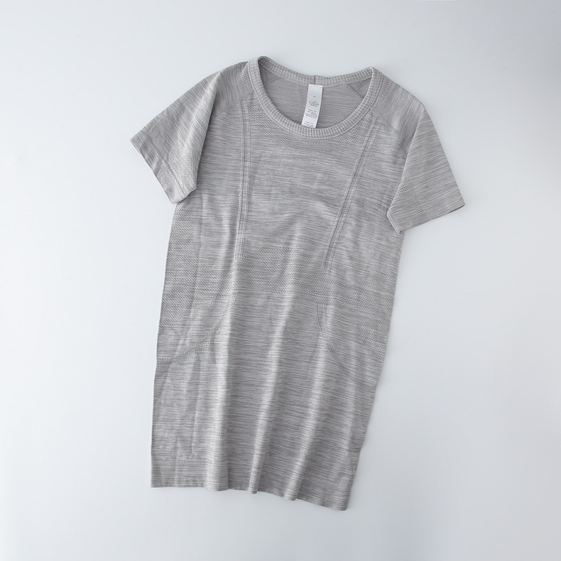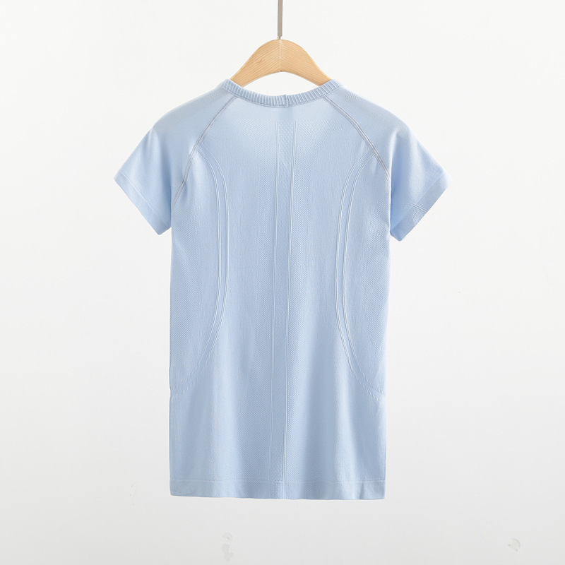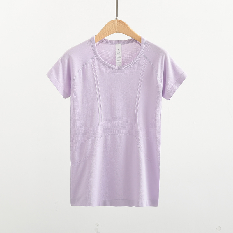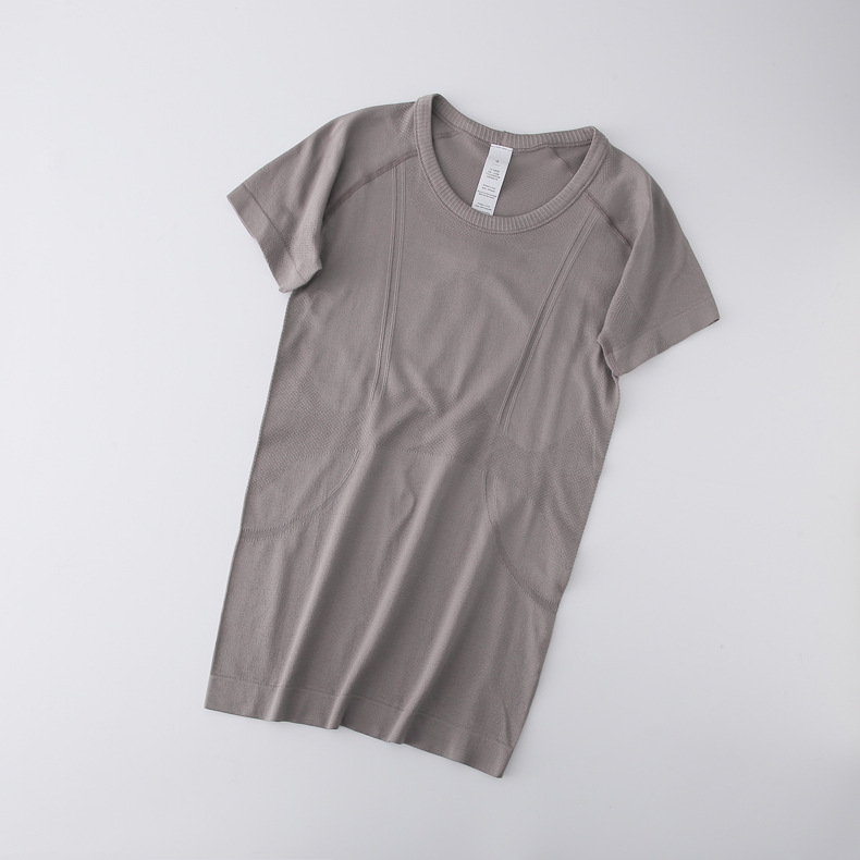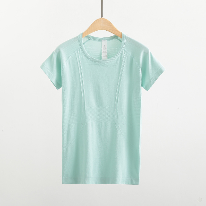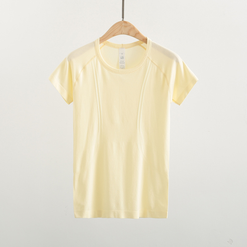 Lulu 스포츠 반팔 여성 요가 탑 원활한 니트 라운드 넥 피트니스웨어 러닝 얇은 티셔츠 겉옷스토어 가기