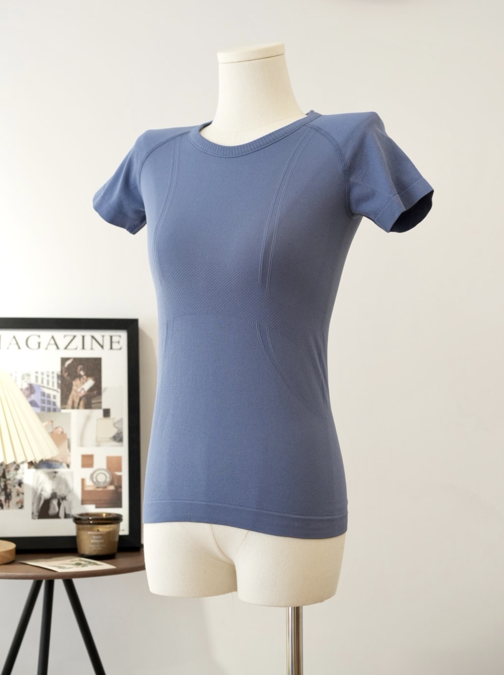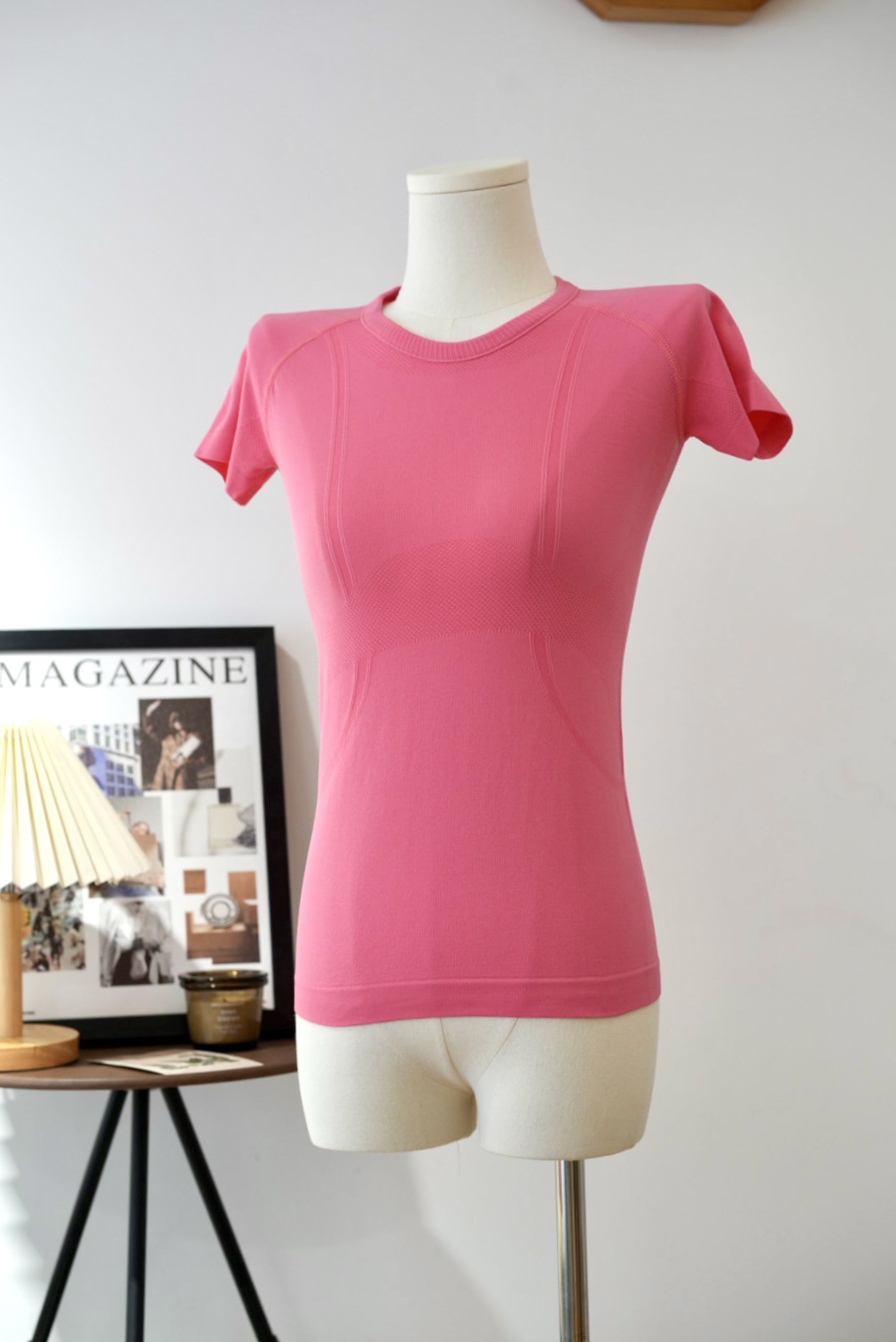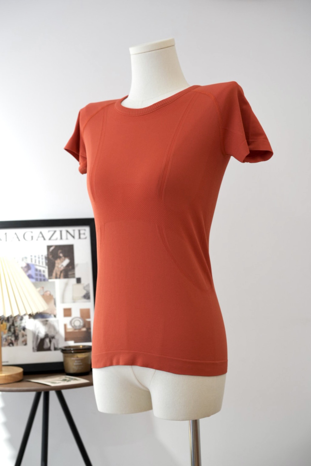 Lulu 스포츠 반팔 여성 요가 탑 원활한 니트 라운드 넥 피트니스웨어 러닝 얇은 티셔츠 겉옷스토어 가기