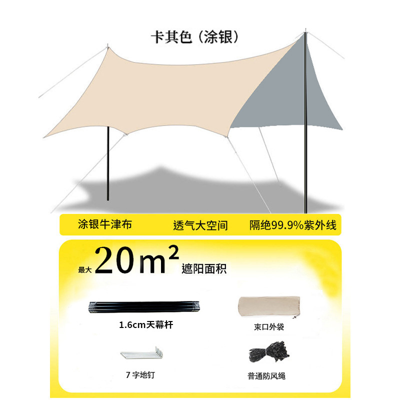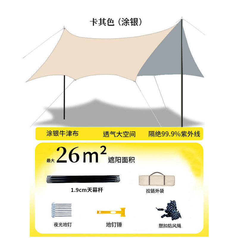 • 실버 코팅 캐노피 [핫 모델]에는 해머 + 19 튜브 + 플라스틱 버클 반사 로프 + 형광 손톱이 함께 제공됩니다.