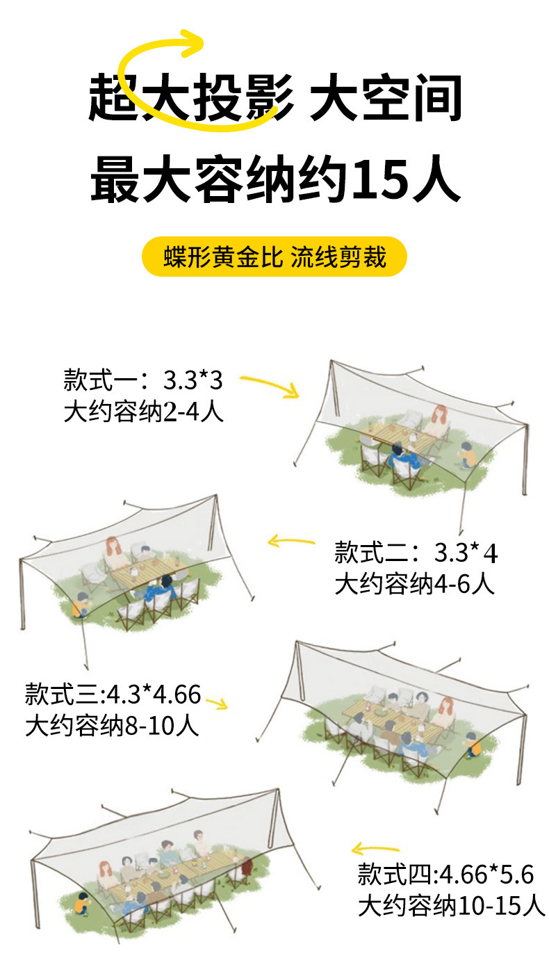 露营天幕帐篷户外10-15人户外天幕遮阳黑胶天幕户外5-6人露营帐篷