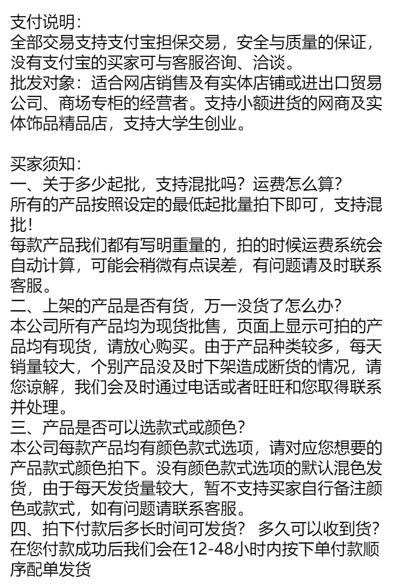 1688온라인 사이트에서 검색된 상품입니다. 알리타플에서는 상품검색/현지구매(구매대행)/국제배송 업무만 제공해드립니다. 해당 상품의 품질 및 상태에 대해서는 확인해 드릴 수 없고 해당 물건이 입고가 된 후에 검수과정을 거쳐야 확인이 가능합니다.