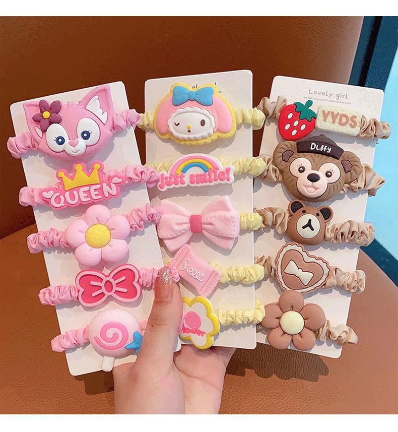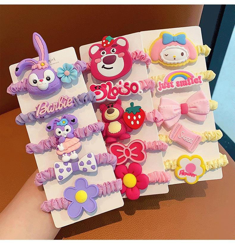 어린이 만화 소장 헤어 링 딸기 곰 머리 밧줄 작은 소녀 높은 탄성 조랑말 꼬리 머리 밧줄 고무 밴드 헤어 액세서리
