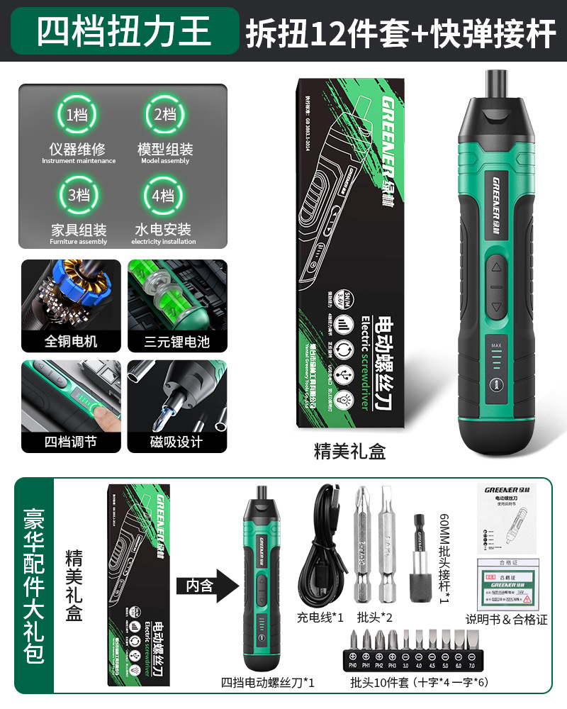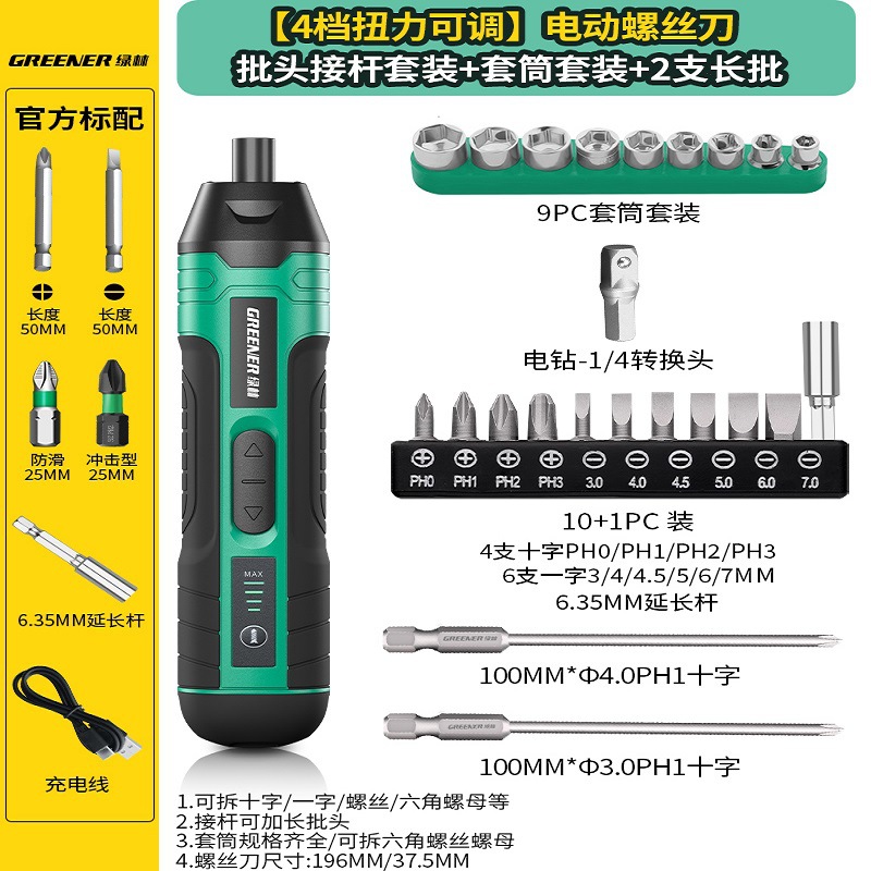 그린우드 전기 드라이버 소형 충전식 가정용 전기 배치 드라이버 리튬 전기 드릴 드라이버 도구 세트