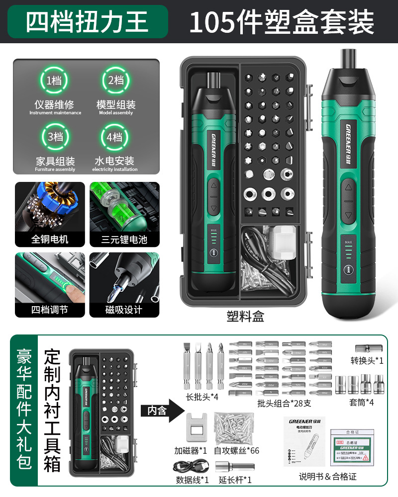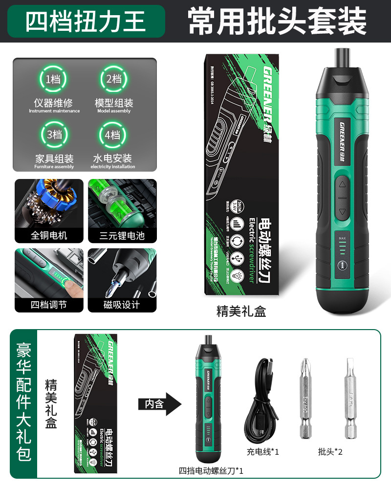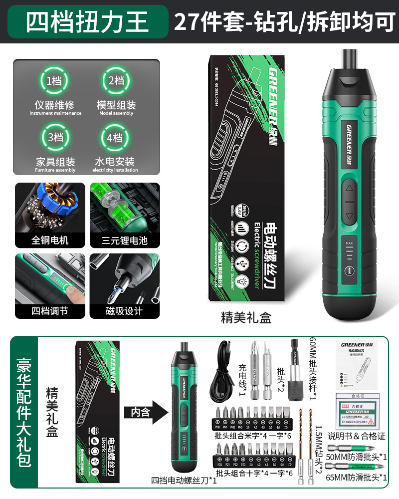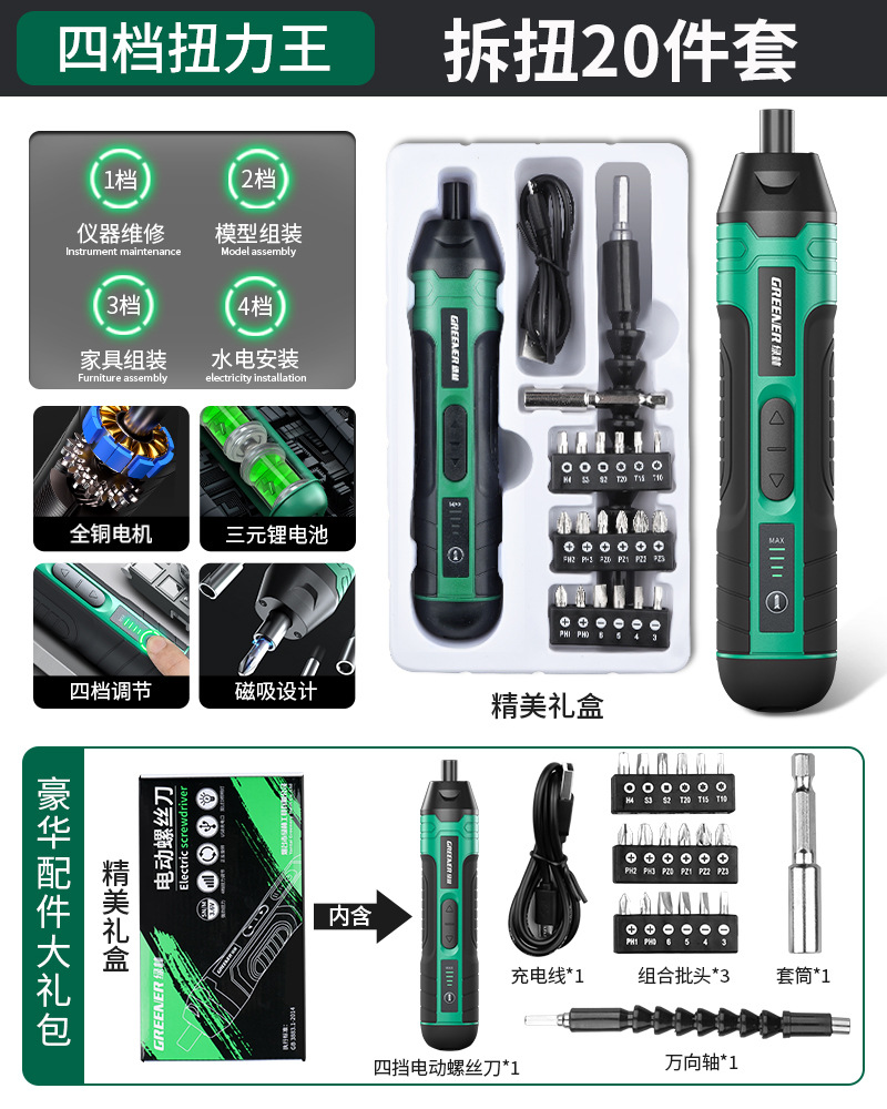 그린우드 전기 드라이버 소형 충전식 가정용 전기 배치 드라이버 리튬 전기 드릴 드라이버 도구 세트스토어 가기