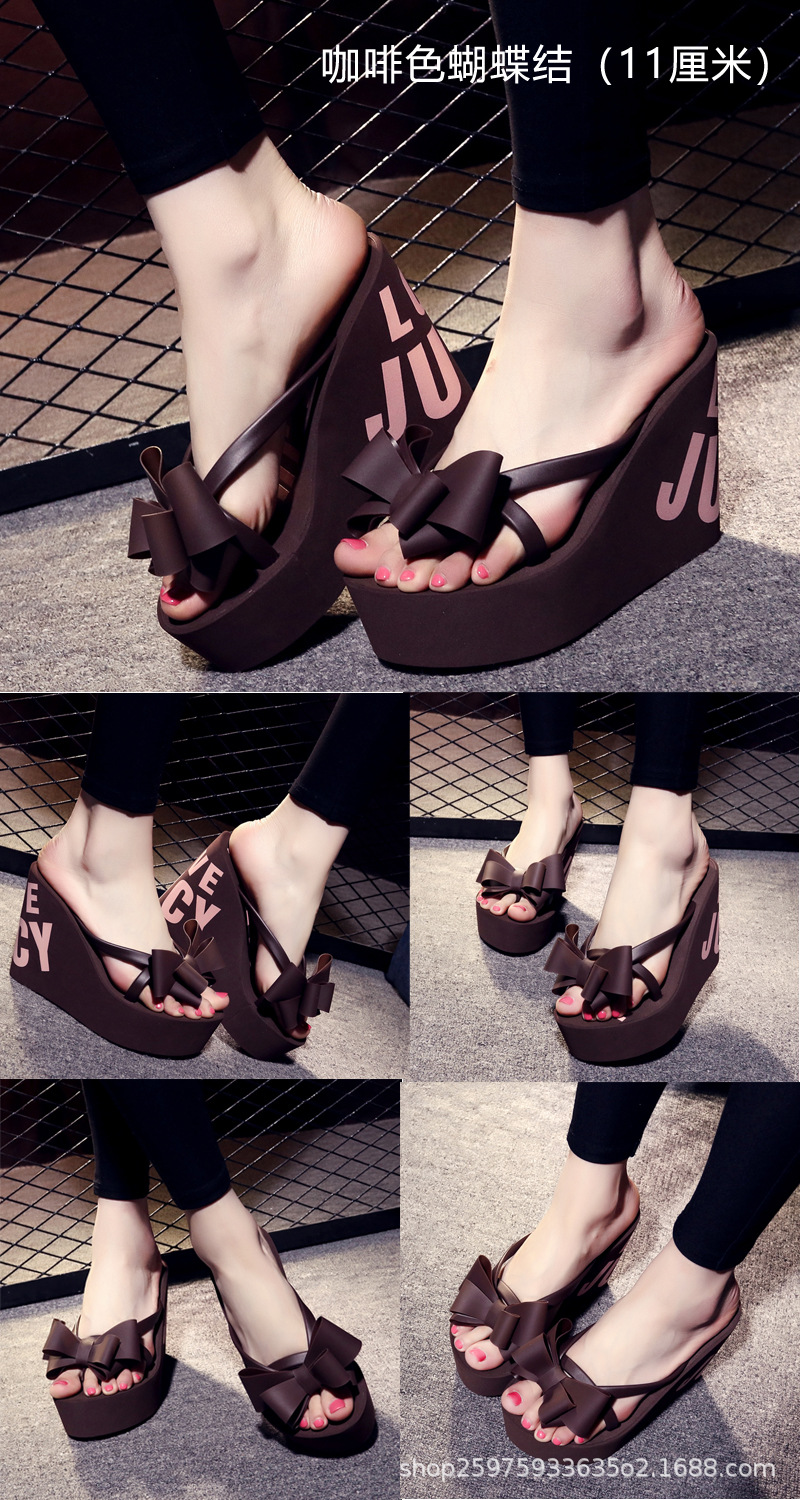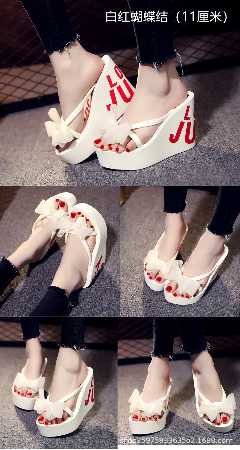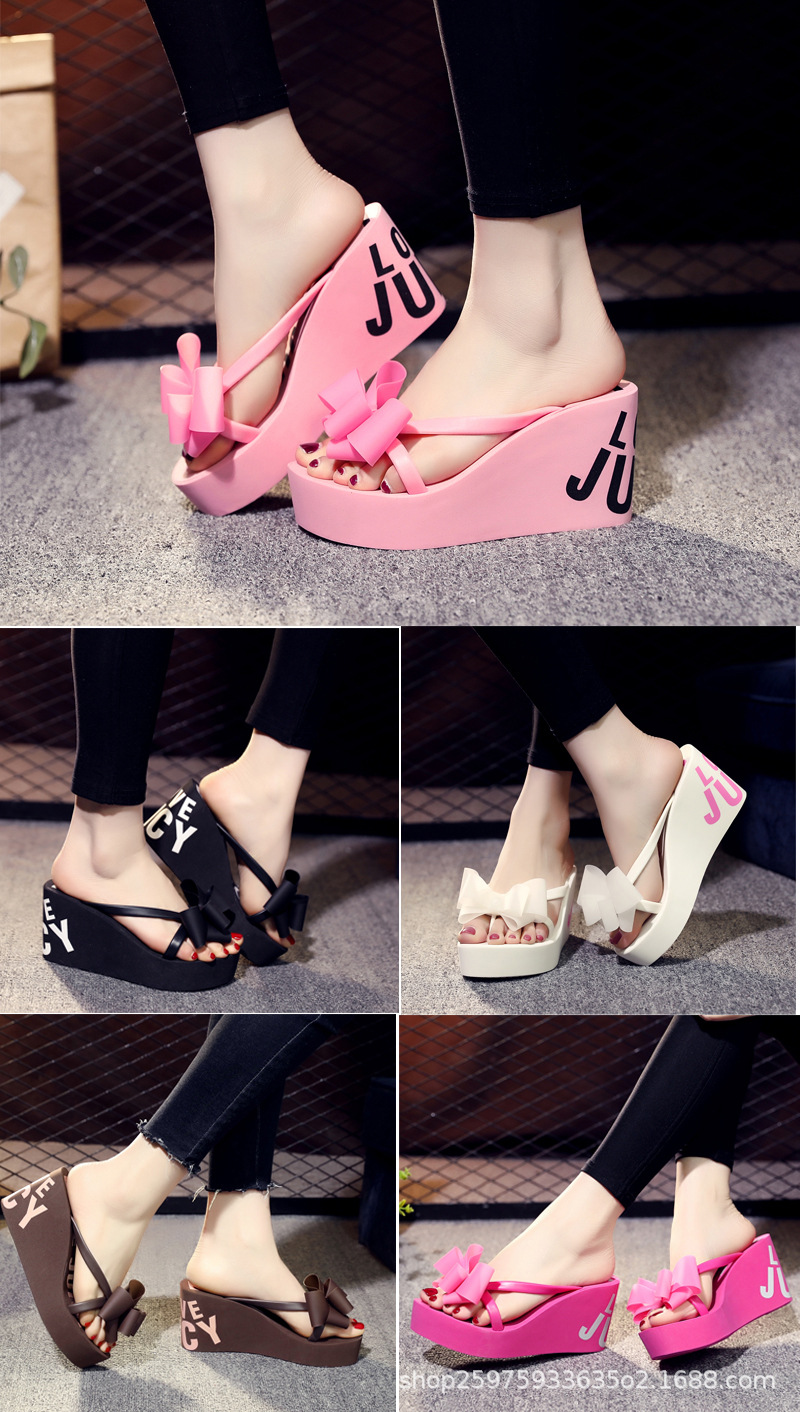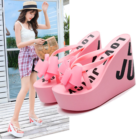 웨지 플립 플롭 여성 복장 여름 신상품 활 달콤한 홀리데이 샌들 비치 홀리데이 두꺼운 밑창 하이힐 여성 신발스토어 가기