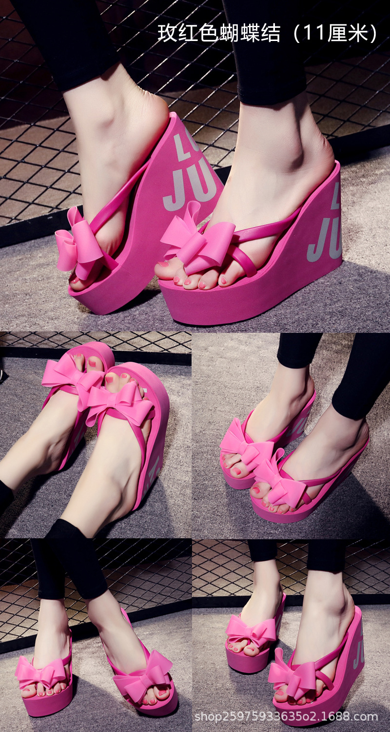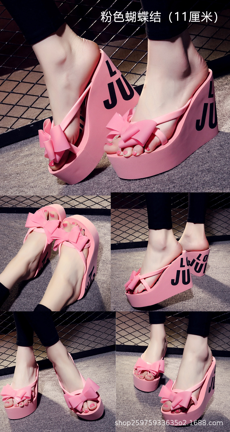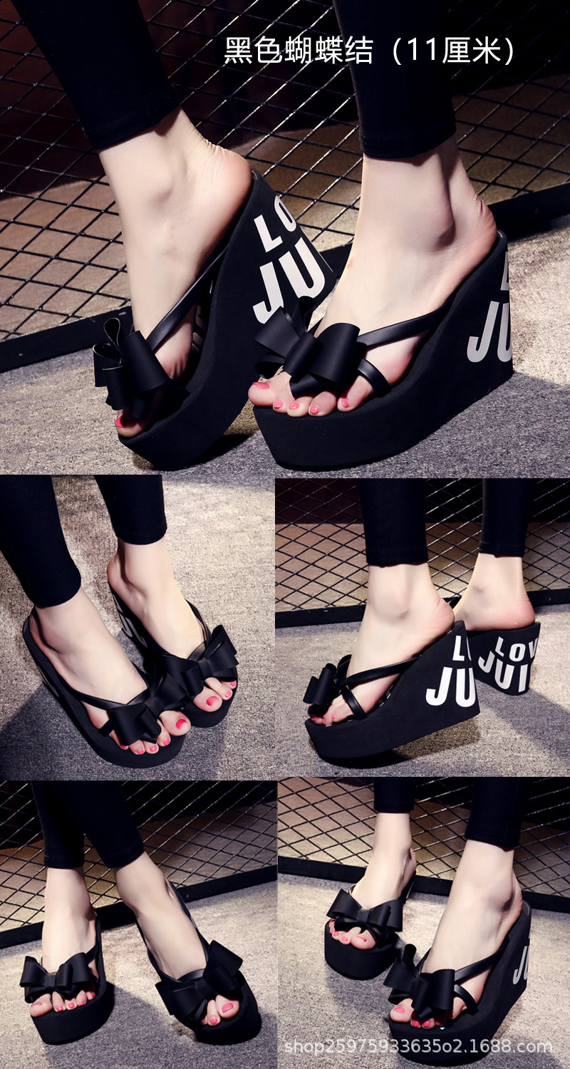 웨지 플립 플롭 여성 복장 여름 신상품 활 달콤한 홀리데이 샌들 비치 홀리데이 두꺼운 밑창 하이힐 여성 신발스토어 가기