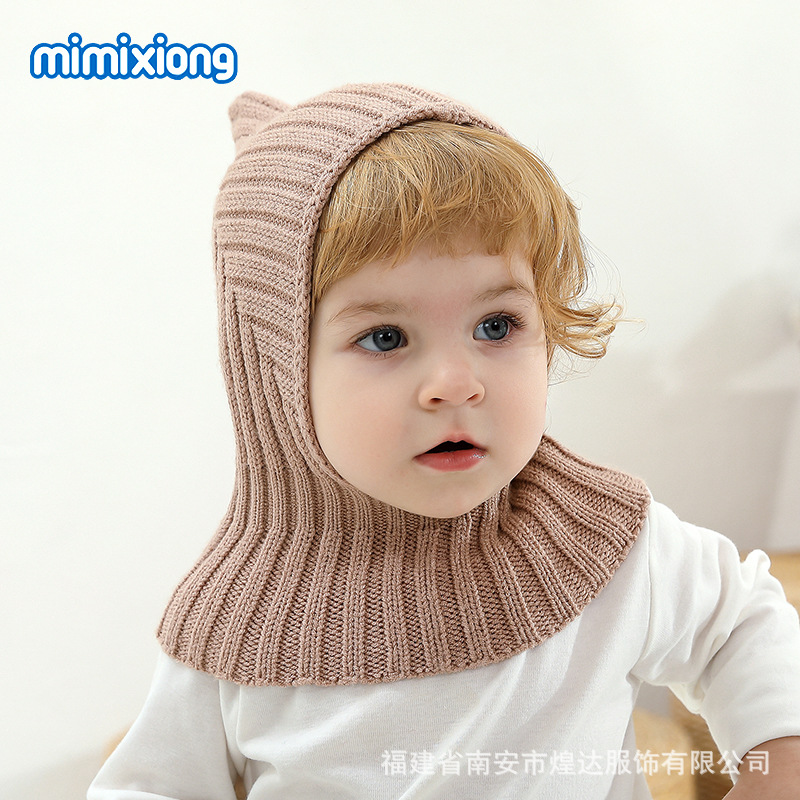 새로운 아기 모자와 스카프 통합 겨울 따뜻한 풀오버 캡 아기 울 모자 방풍 목 귀 보호 캡
