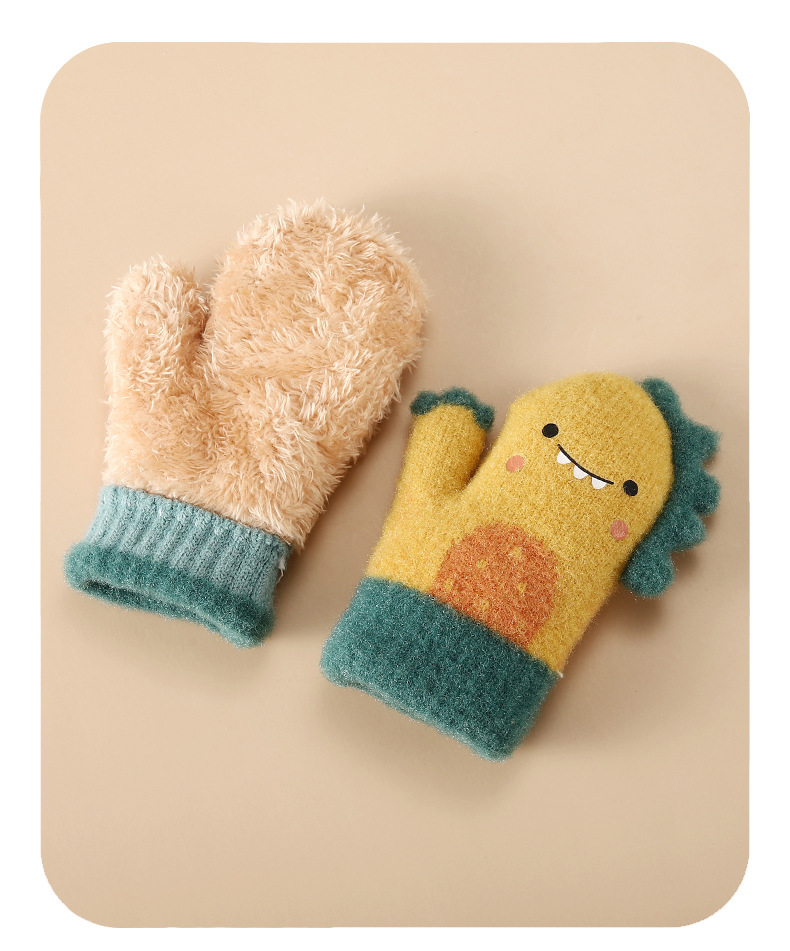 겨울 신상 아동 장갑 귀여운 만화 캐릭터 아기 방한 플러스 벨벳 두꺼운 아기 니트 따뜻한 방한 장갑