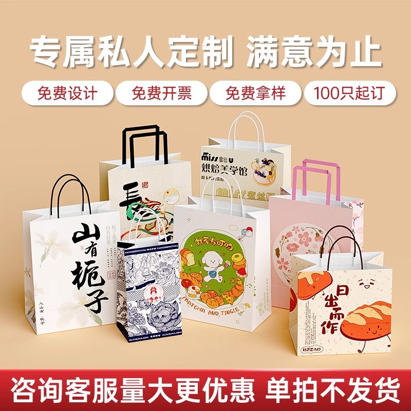 크래프트 종이 가방 휴대용 선물 가방 동반자 선물 가방 두꺼운 선물 가방 도매 테이크 아웃 휴대용 종이 가방 포장 4