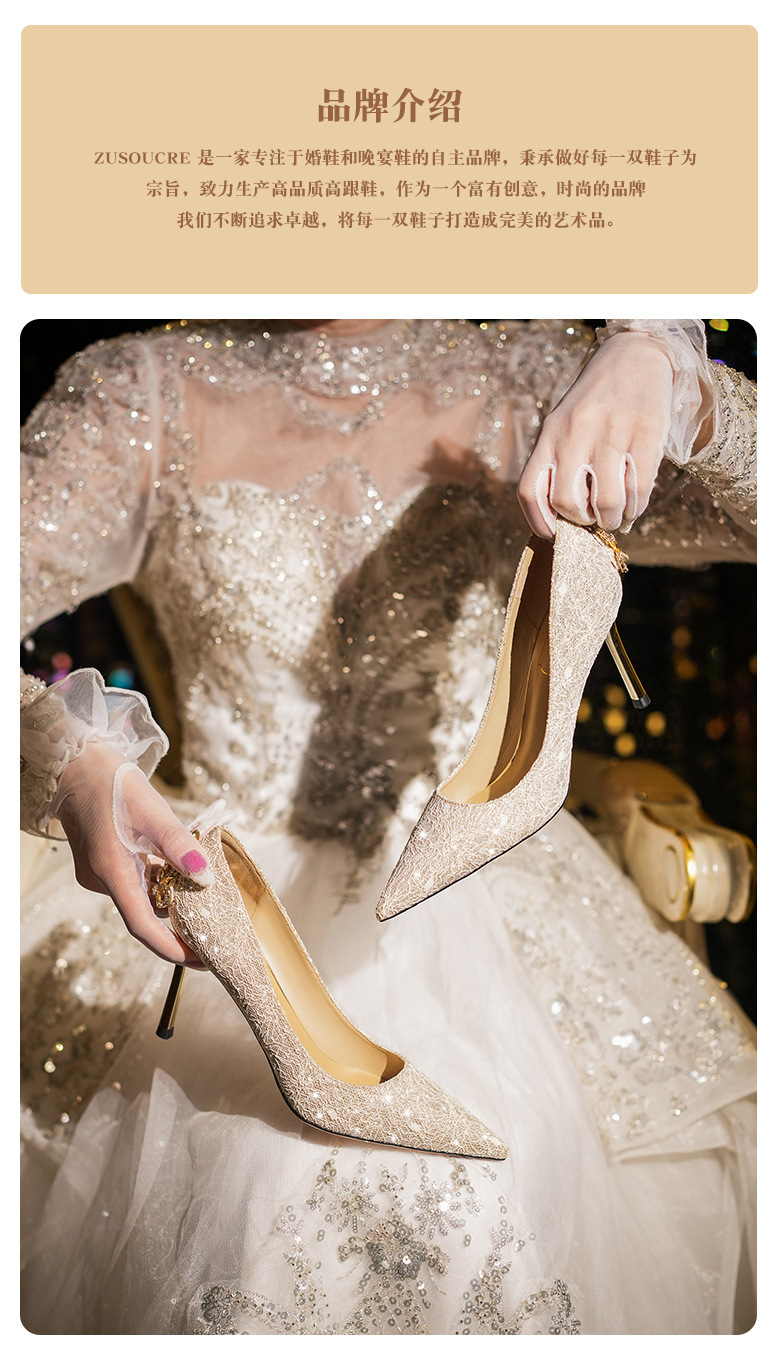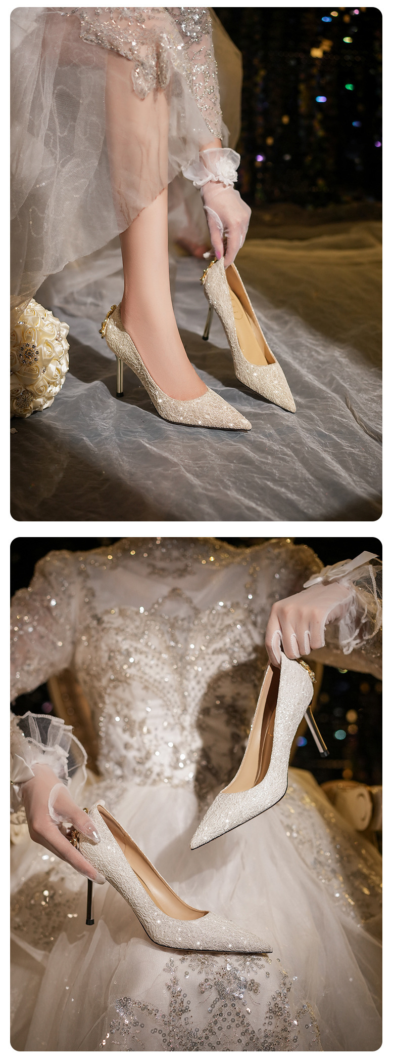 708-81 신부 Xiuhe 웨딩 슈즈 여성용 양가죽 새로운 프랑스 흰색 하이힐 틈새 하이 엔드 웨딩 슈즈스토어 가기