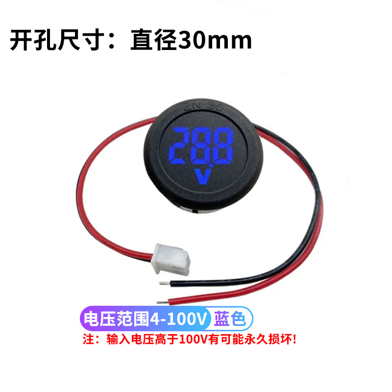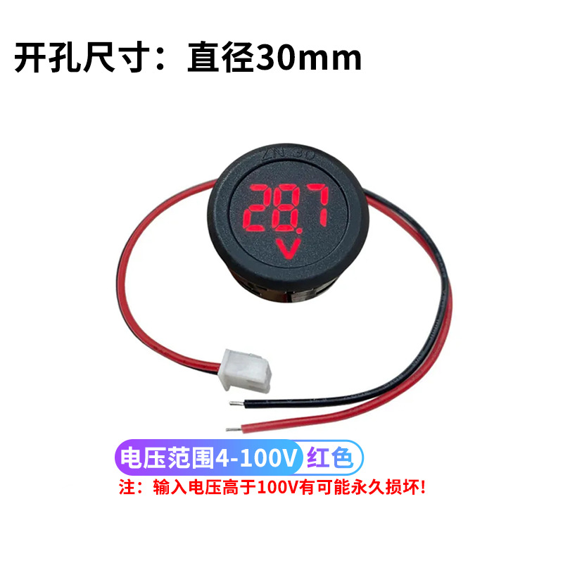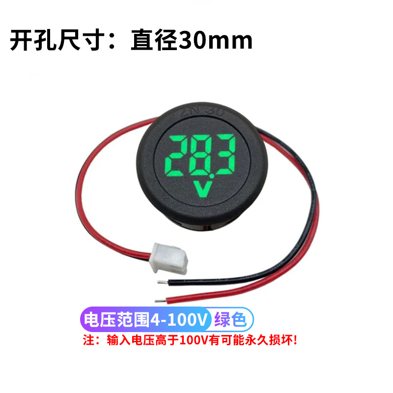 LED 디지털 디스플레이 원형 2선식 전압계 DC 4-100V DC 디지털 전압계 헤드 디스플레이 역극성 보호 기능스토어 가기