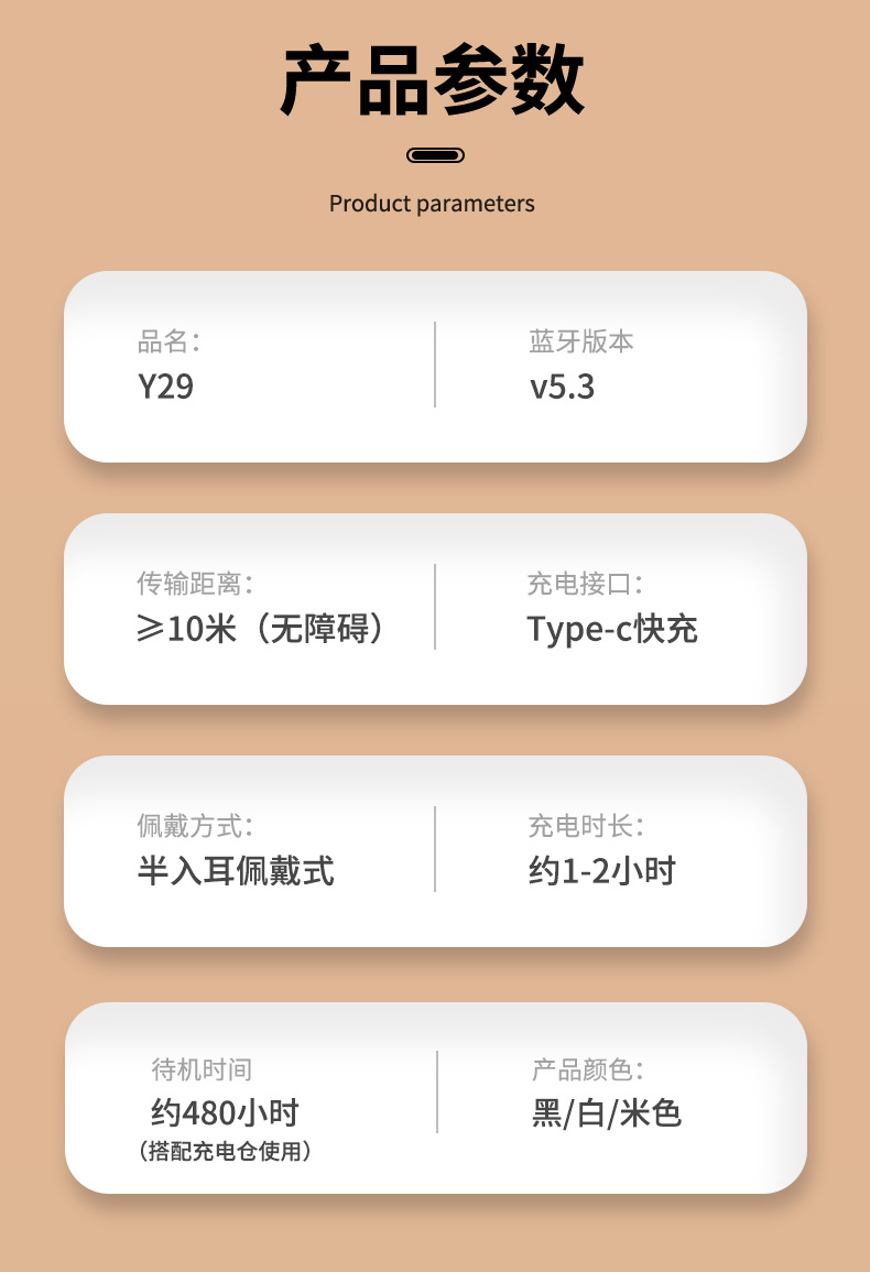 Y29 블루투스 이어폰 수면용 무선 이어폰 인이어 고음질 노이즈 캔슬링 이어폰 2025 신형 블루투스 이어폰