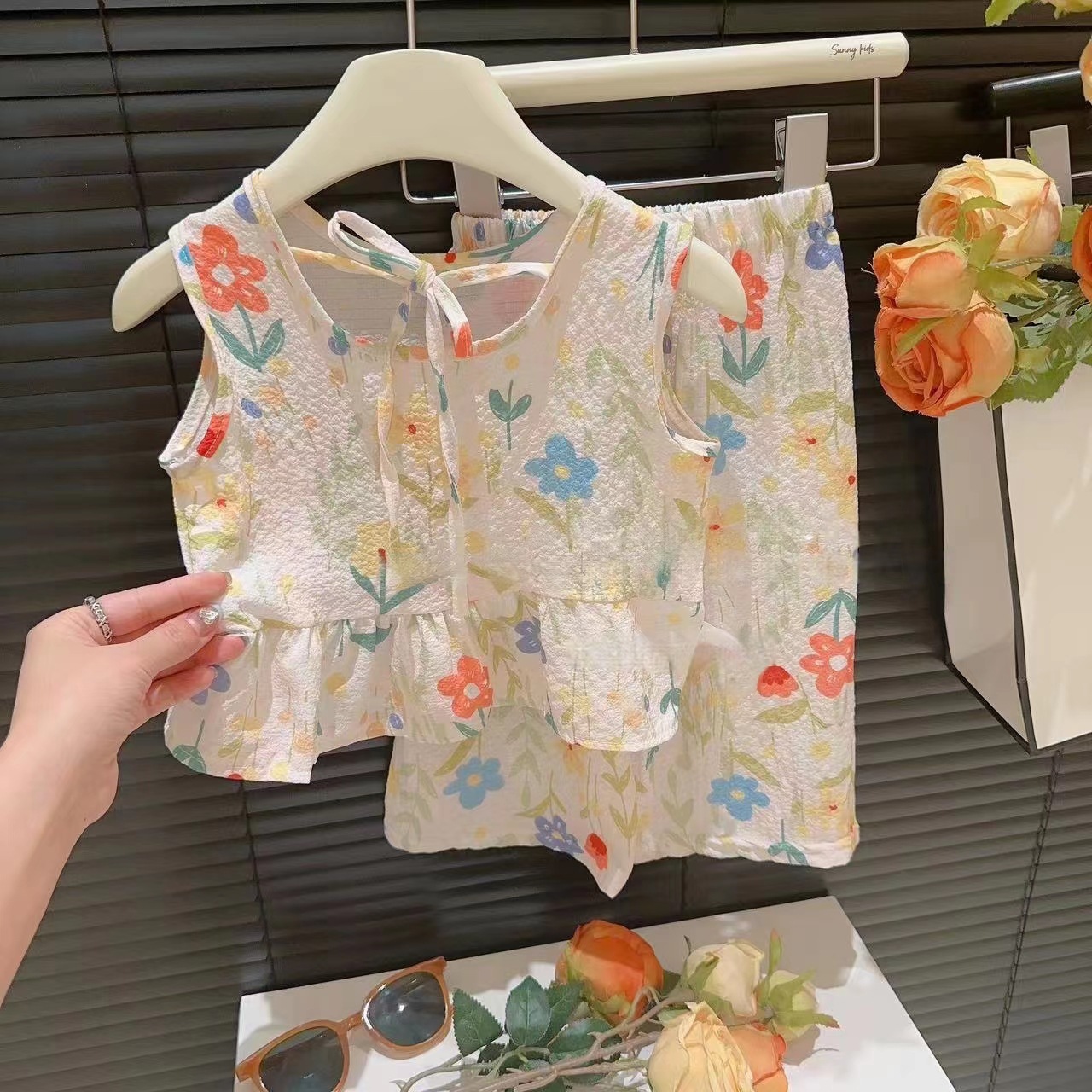 여름 어린이 조끼 세트 소녀의 도파민 착용 2 종 세트 아기의 유화 꽃 유행 사이버 연예인 세트스토어 가기