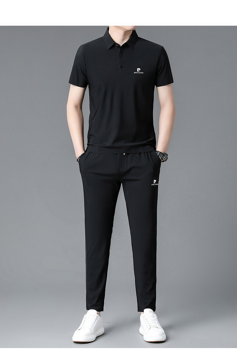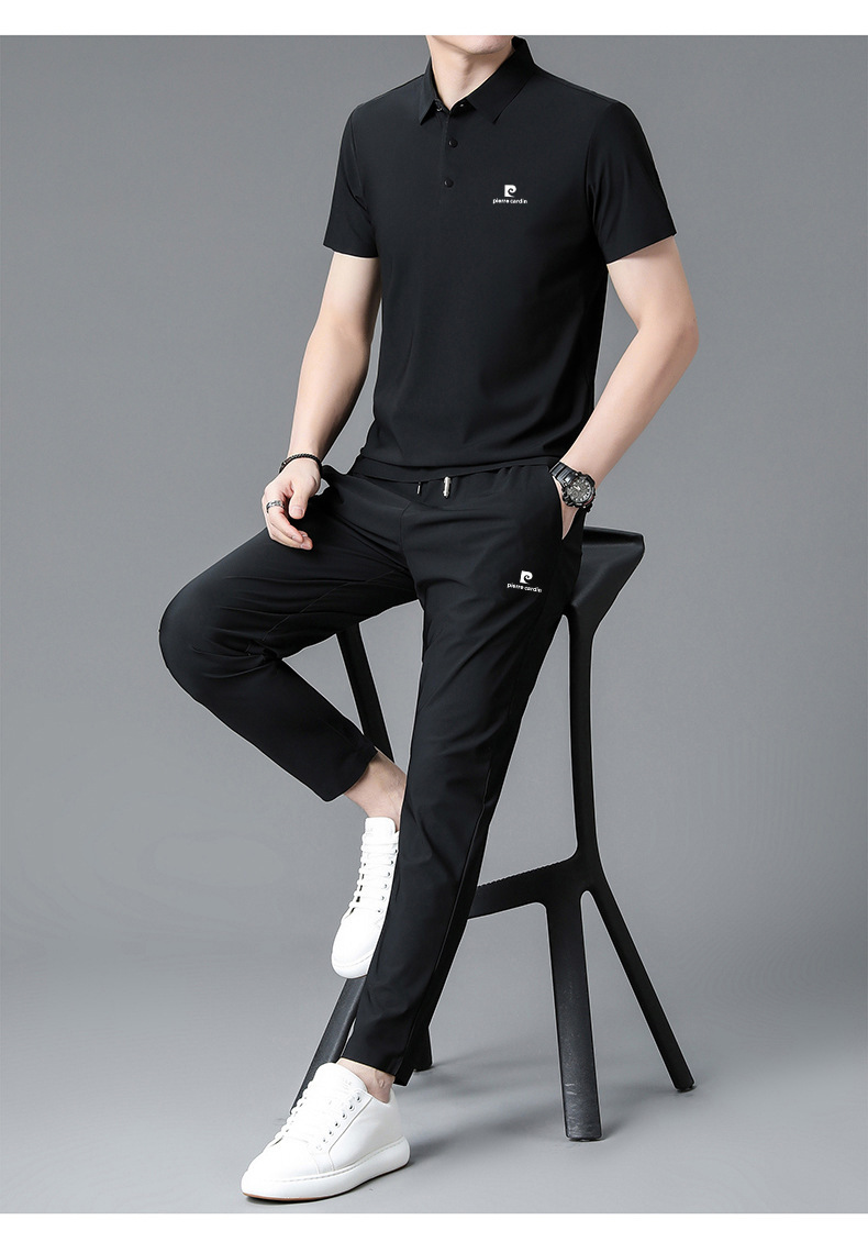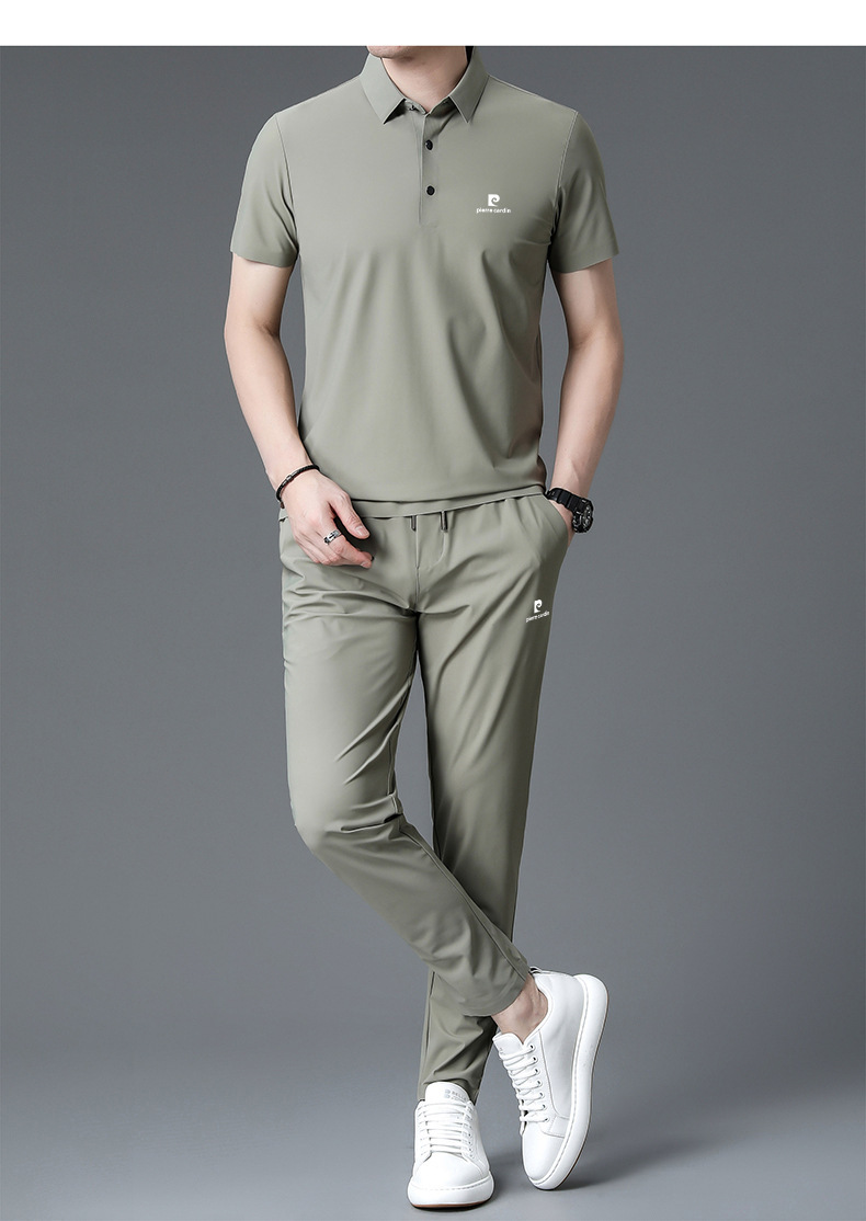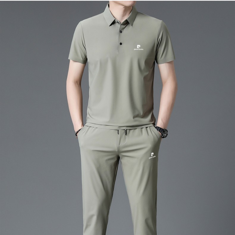 2023 여름 새로운 남성 패션 캐주얼 스포츠 세트 젊은 남성과 중년 남성 투피스 세트